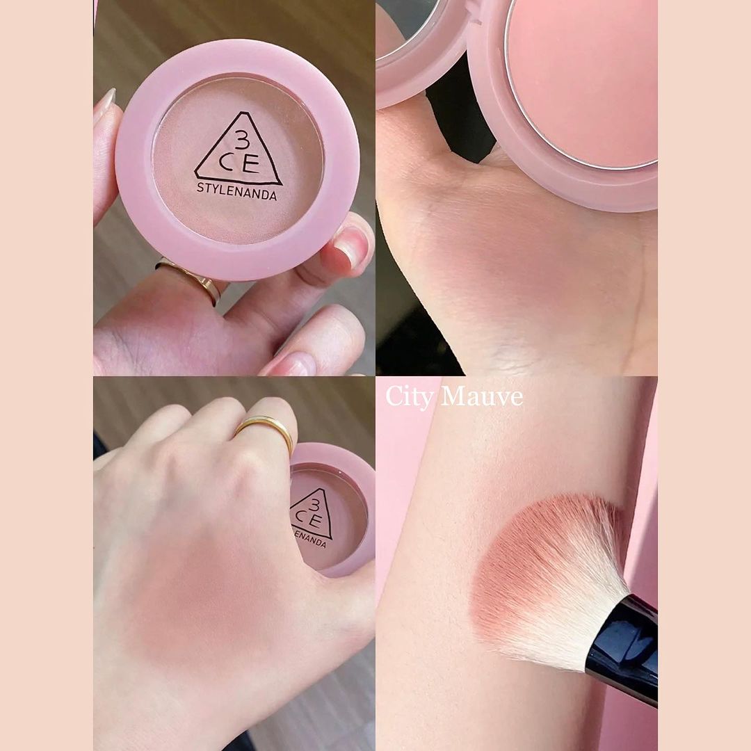 - 3CE Mood Recipe Face Blush là phấn má sở hữu hạt phấn siêu mịn, lướt nhẹ trên da, khi apply lên da màu ửng hồng tự nhiên