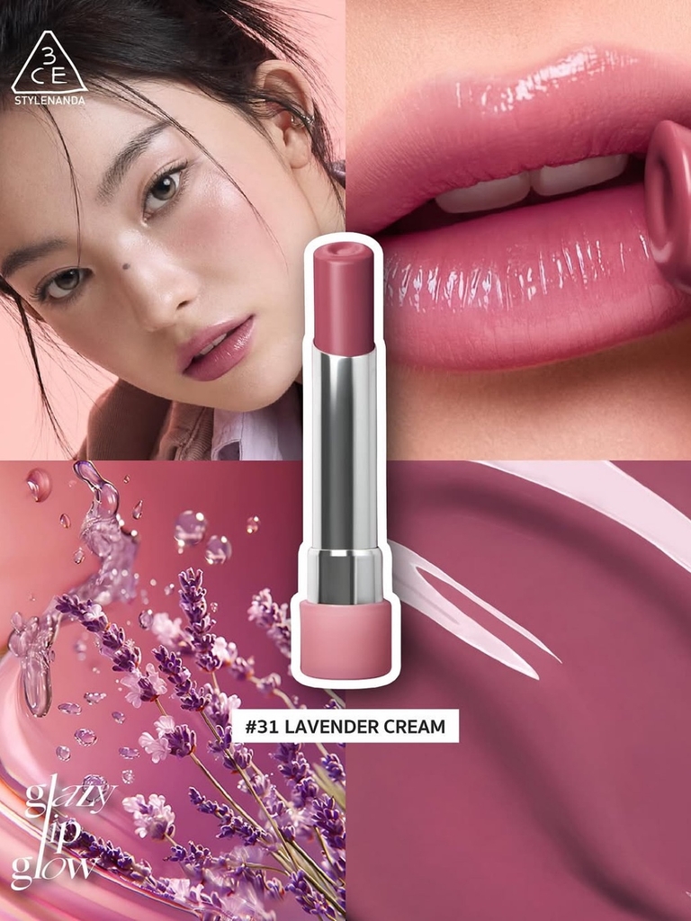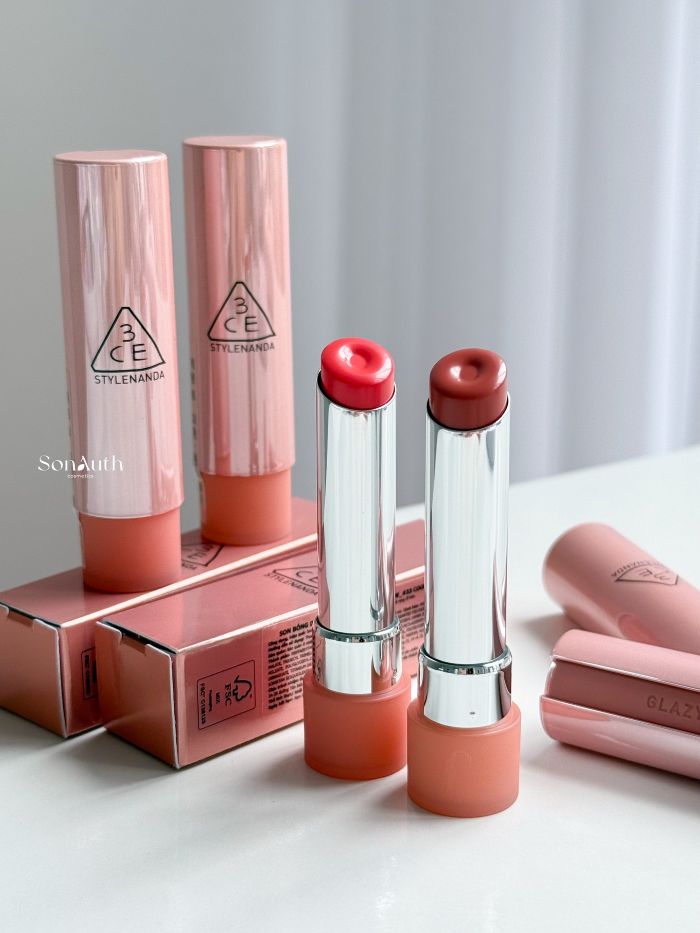 - 3CE Glazy Lip Balm là dòng son dưỡng bóng với bảng màu ngọt, cuốn hút