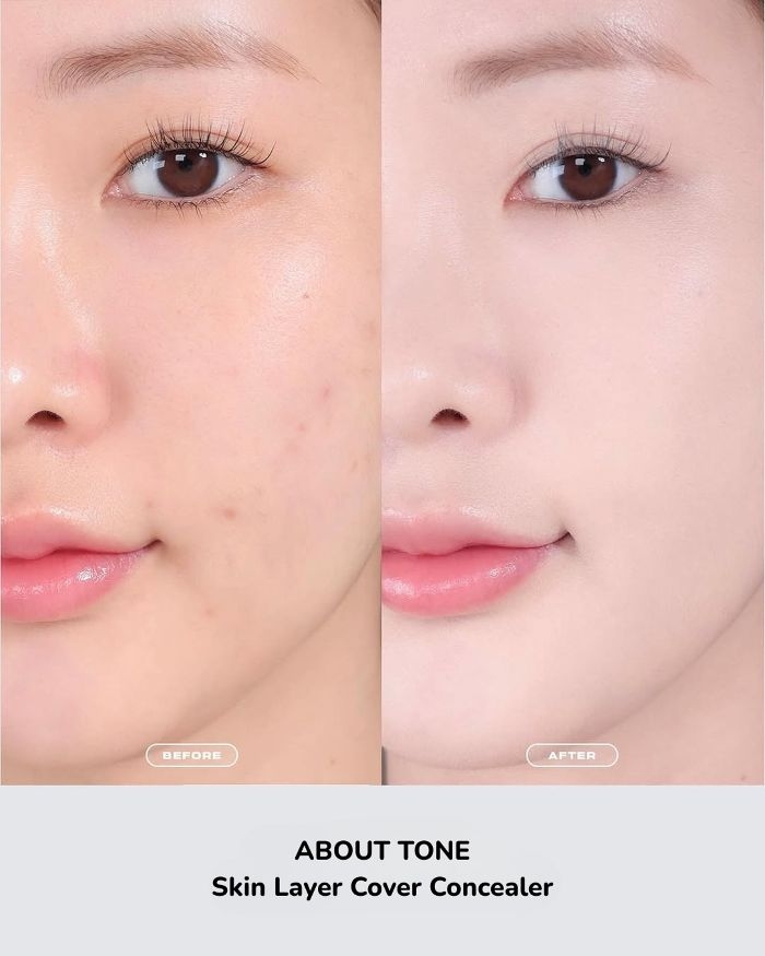 - About Tone Skin Layer Cover Concealer là sản phẩm che khuyết điểm đa năng, sở hữu chất kem lỏng mịn, dễ dàng tán đều trên da