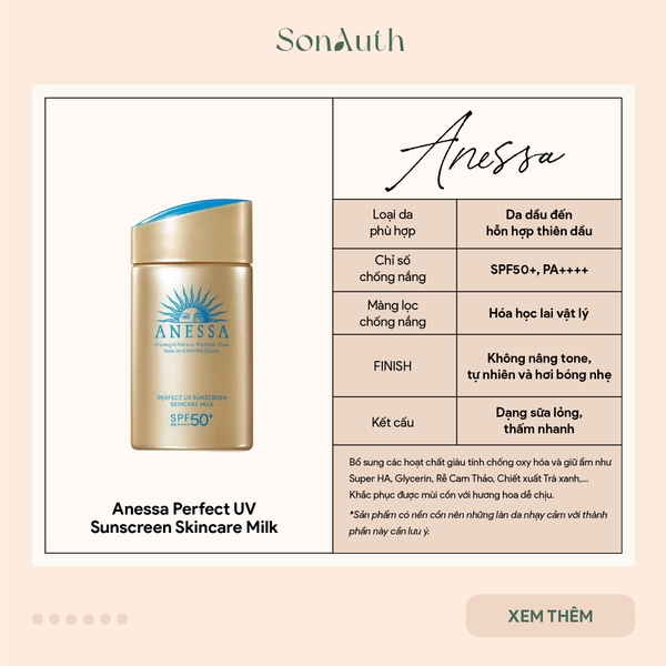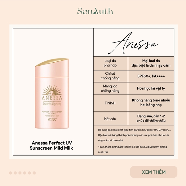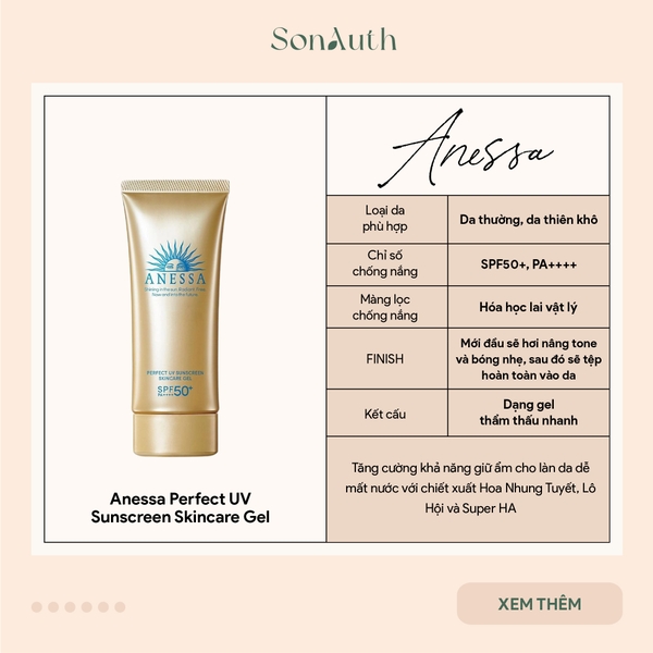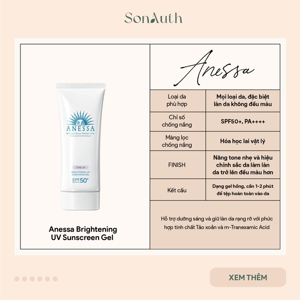 Anessa được mệnh danh là 1 trong top đầu các thương hiệu kem chống nắng xứ mặt trời mọc trong suốt 30 năm qua. Với đa dạng các dòng sản phẩm chống nắng, Anessa có thể đáp ứng được mọi nhu nhu cầu của làn da. Bên cạnh đó, với công nghệ Aqua Booster độc quyền giúp nâng cao khả năng bảo vệ da khỏi tia UV khi tiếp xúc với nước hay mồ hôi đó.