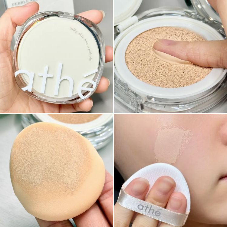 - Athe Pebble Skin Fitting Cushion là 1 dòng phấn nước mang tới làn da sang mịn và mịn màng như đá cuội. Sự kết hợp hoàn hảo của 3 bước cho da trong 1: Cấp ẩm + Kem nền + Phấn phủ giúp thời gian makeup còn 1/3