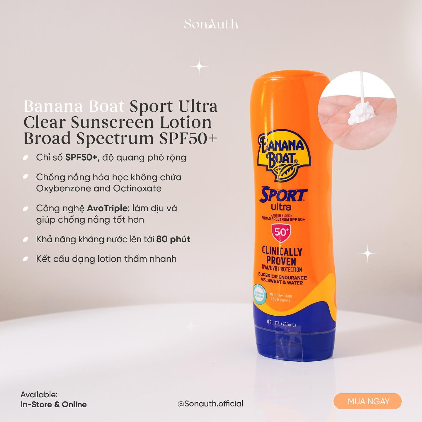 𝐁𝐚𝐧𝐚𝐧𝐚 𝐁𝐨𝐚𝐭 𝐒𝐩𝐨𝐫𝐭 𝐔𝐥𝐭𝐫𝐚 𝐂𝐥𝐞𝐚𝐫 𝐒𝐮𝐧𝐬𝐜𝐫𝐞𝐞𝐧 𝐁𝐫𝐨𝐚𝐝 𝐒𝐩𝐞𝐜𝐭𝐫𝐮𝐦 - 𝐒𝐮𝐧𝐬𝐜𝐫𝐞𝐞𝐧 𝐋𝐨𝐭𝐢𝐨𝐧 - Dạng kem lỏng làm mềm và dịu da hạn chế tình trạng rát da khi ở dưới nắng quá lâu.