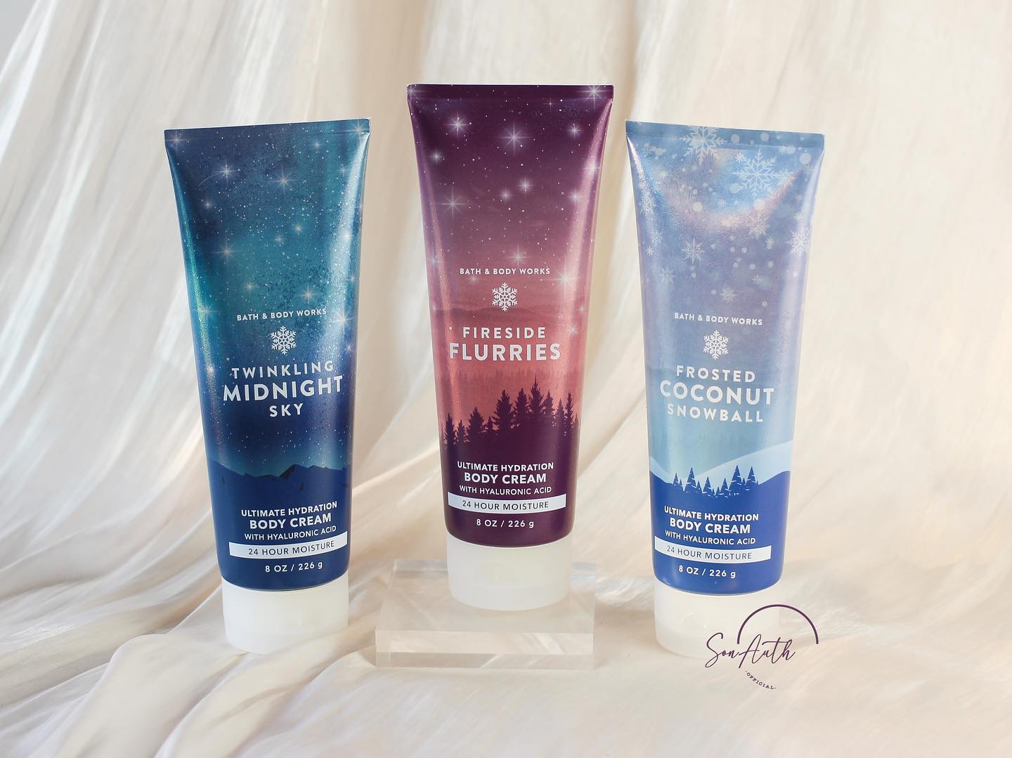 - Frosted Coconut Snowball ( frosted coconut, North Pole vanilla, winter freesia, snow-kissed woods and spun sugar)