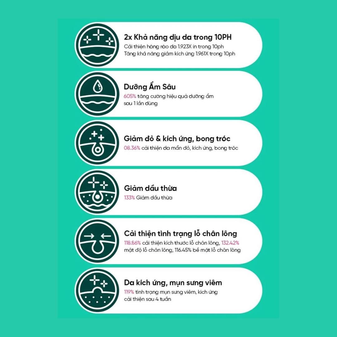 - Hợp chất Phytosterol (hoạt chất tiền Provitamin D chiết xuất từ Rau má) giúp củng cố hàng rào bảo vệ da, nuôi dưỡng và hỗ trợ phục hồi nền da khỏe mạnh hơn