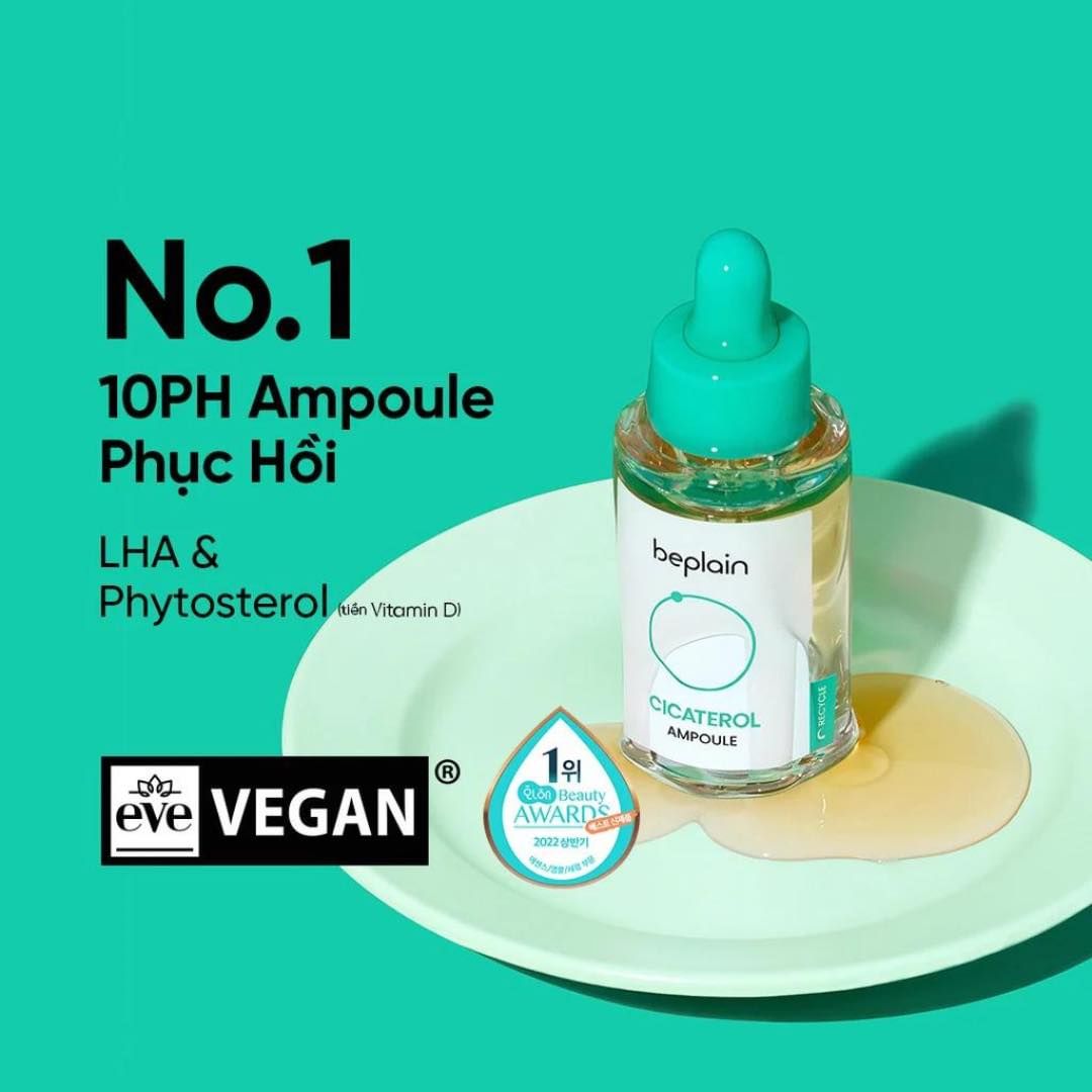 Beplain Cicaterol Ampoule là dòng ampoule được cô đặc tới 69.5% chiết xuất Rau má (Centella asiatica) và phytosterol. Dạng tinh chất thuần chay này sẽ giúp làm dịu da một cách hiệu quả đồng thời củng cố hàng rào tự nhiên. Một sản phẩm không thể thiếu nếu như bạn có làn da nhạy cảm, dễ kích ứng hay dị ứng thời tiết. Đây là sản phẩm làm dịu, phục hồi da đạt No.1 trên bảng xếp hàng làm đẹp Hwahae.