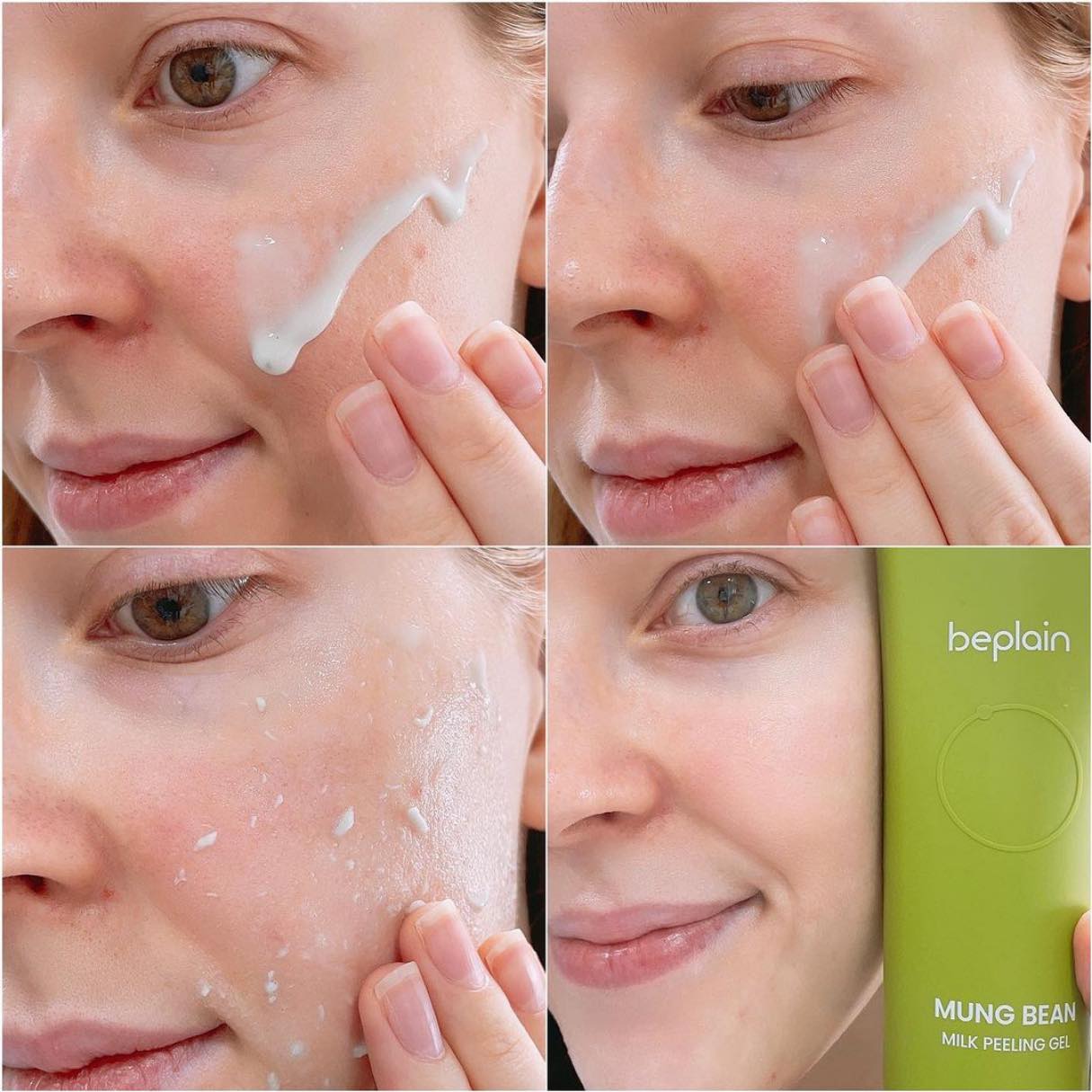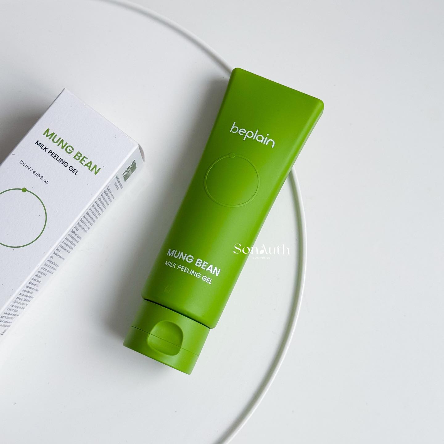 - Beplain Mung Bean Milk Peeling Gel là gel tẩy da chết vật lý với công thức dịu nhẹ, mang lại làn da mềm mịn siêu mướt
