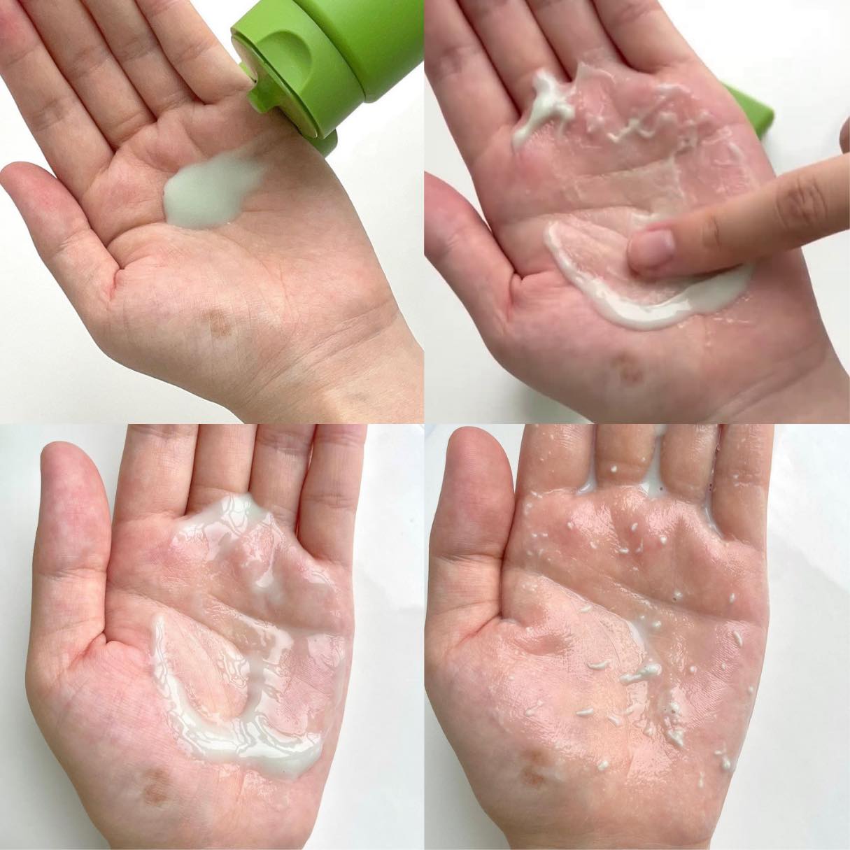 Dạng sữa lợn cợn nhẹ các hạt từ hỗn hợp của sữa đậu xanh, đậu nành và chiết xuất đậu xanh, sẽ vón lại khi gặp các tế bào da chết