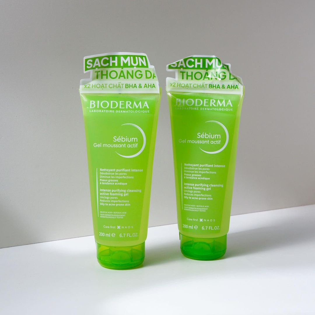 - Bioderma Sebium Gel Moussant Actif là gel rửa mặt chứa chất hoạt tính “actif” với chất gel trong suốt, tạo bọt nhẹ nhàng