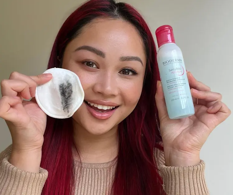 BƯỚC 3: Lau sạch lớp trang điểm, không cần rửa lại với nước.