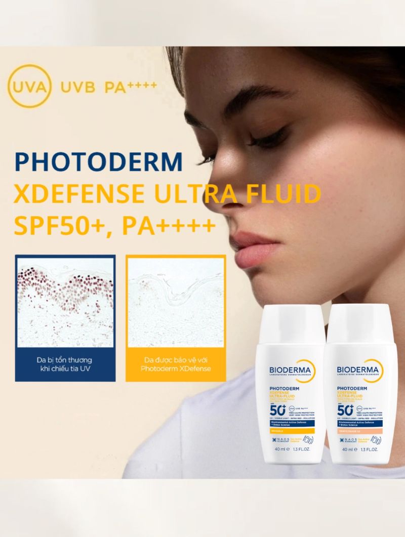 - Bioderma XDefense Ultra Fluid SPF50+ Tint là sữa chống nắng phổ rộng ráo mịn giúp bảo vệ da toàn diện với chỉ số chống nắng cao - SPF50+, PA++++