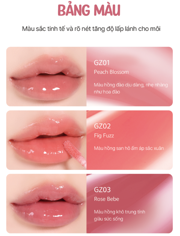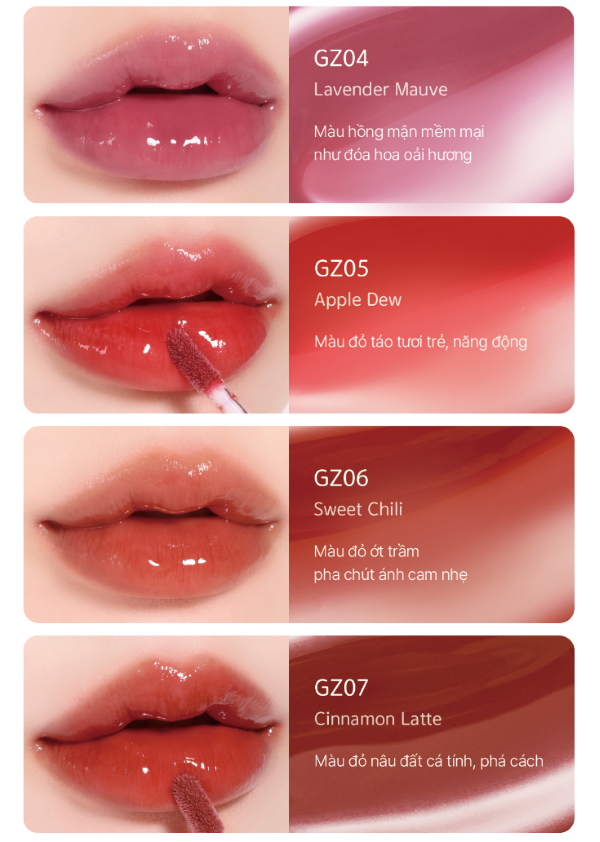 - Son có độ bóng cao giúp môi căng mọng như jelly. Lớp phủ màu trong trẻo, sống động tạo hiệu ứng 3D ấn tượng cho môi đầy đặn trông thấy