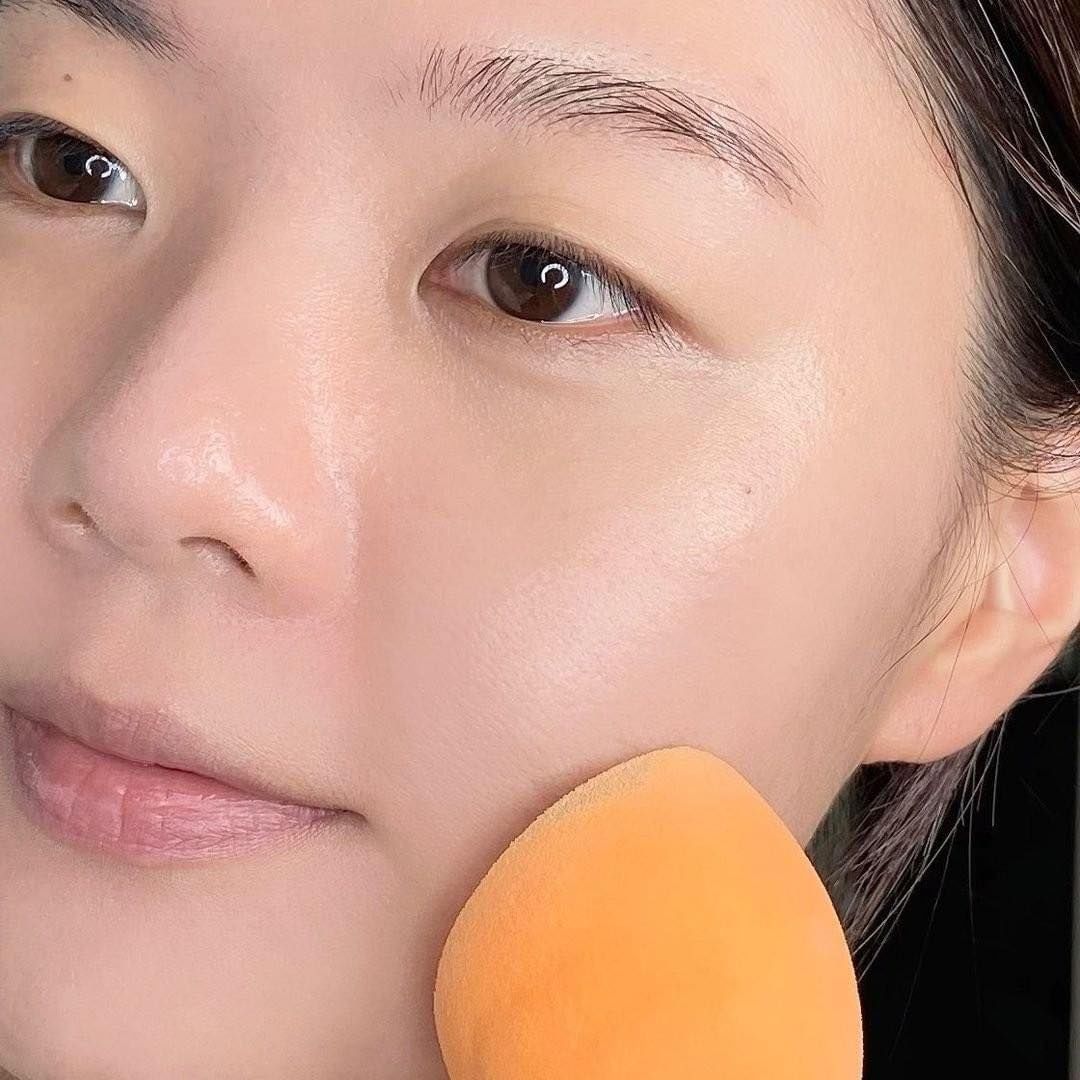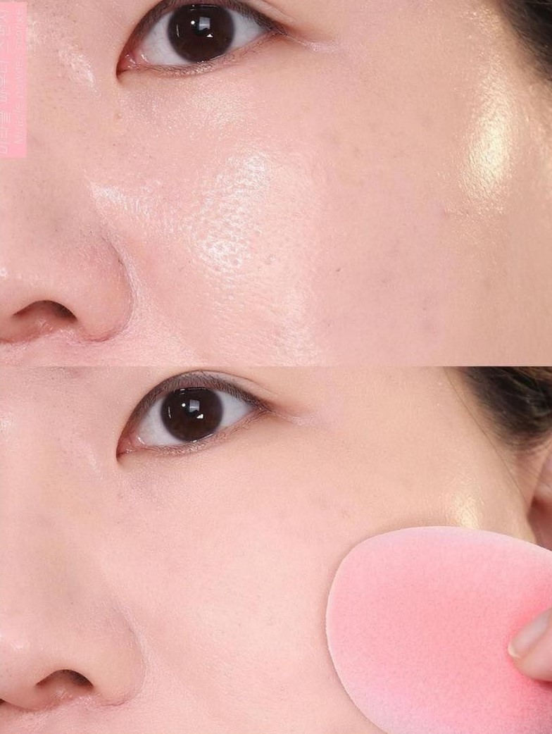 Dùng mút dặm nhẹ kem nền theo hướng từ trong da ngoài