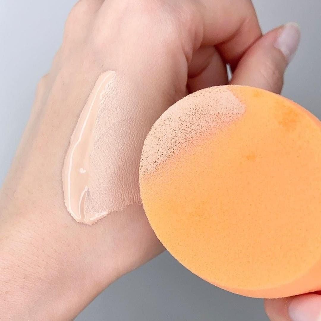 - Riêng mút màu cam cậu có thể dùng khô hoặc ẩm đều tạo được hiệu quả che phủ như ý nhé. Còn mút màu hồng chỉ dùng cho dạng phấn thì chỉ dùng khô thôi nha