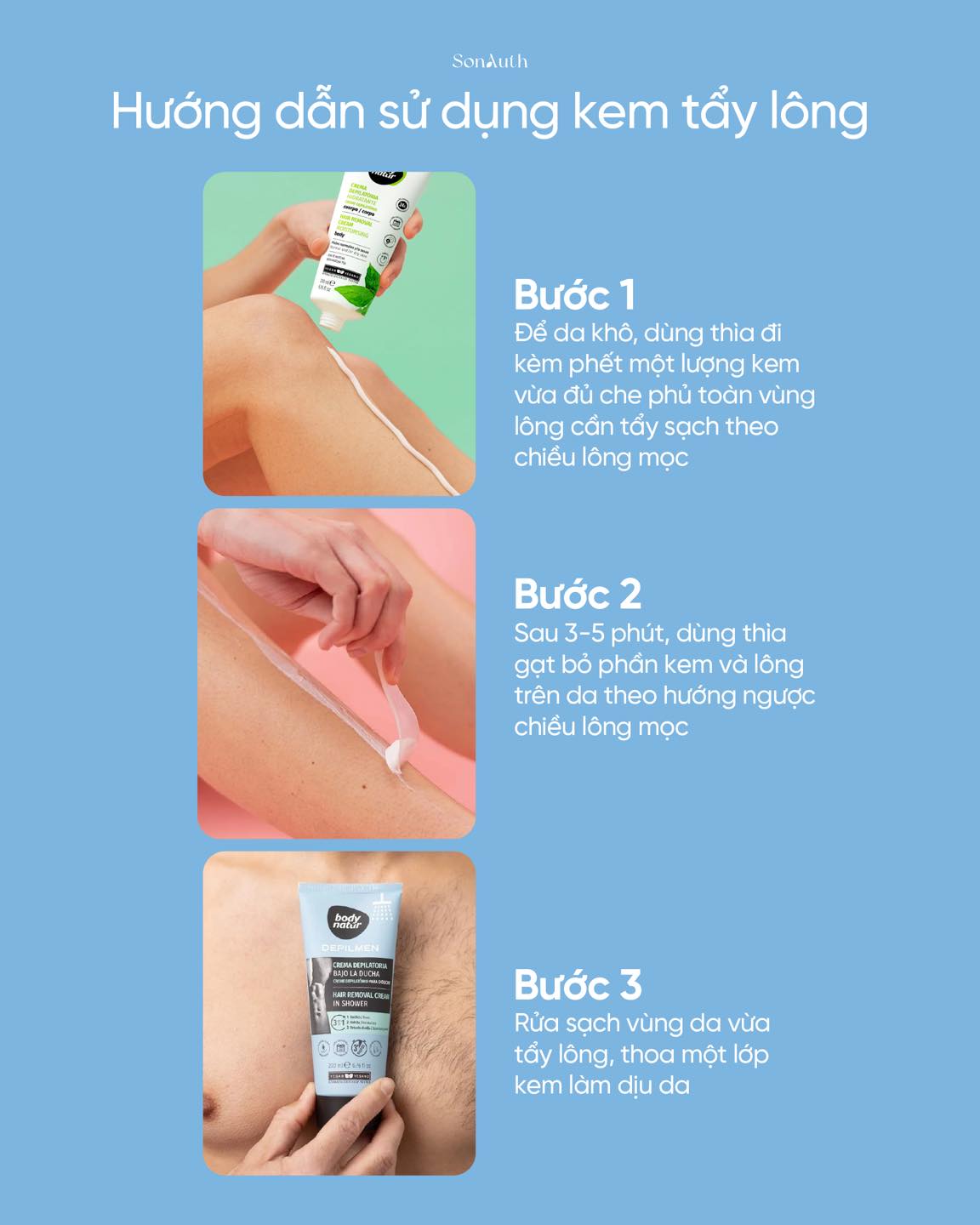 - Kem tẩy lông Body Natur Hair Removal Cream Moisturising được nâng cấp với công thức thuần chay mới. Sản phẩm có khả năng tẩy lông nhẹ nhàng chỉ sau 3-5 phút, đồng thời không gây bít tắc lỗ chân lông và giúp làn da được dưỡng ẩm vượt trội suốt 24 giờ
