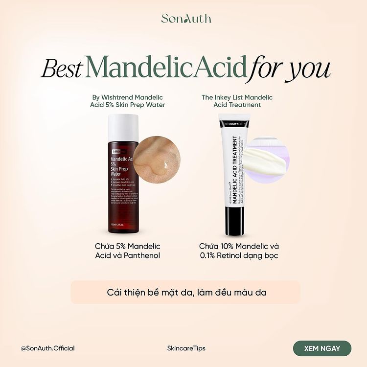 🌟 𝐌𝐚𝐧𝐝𝐞𝐥𝐢𝐜 𝐀𝐜𝐢𝐝: Là dạng khá lành tính, phù hợp với các bạn da nhạy cảm hoặc mới sử dụng hoạt chất, bởi kích thước phân tử khá lớn nên hoạt động hiệu quả trên bề mặt da, giúp da sáng khỏe hơn.