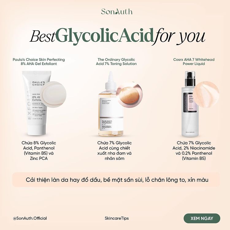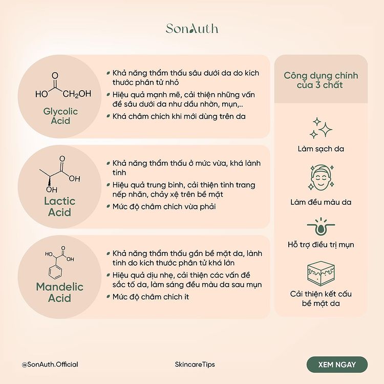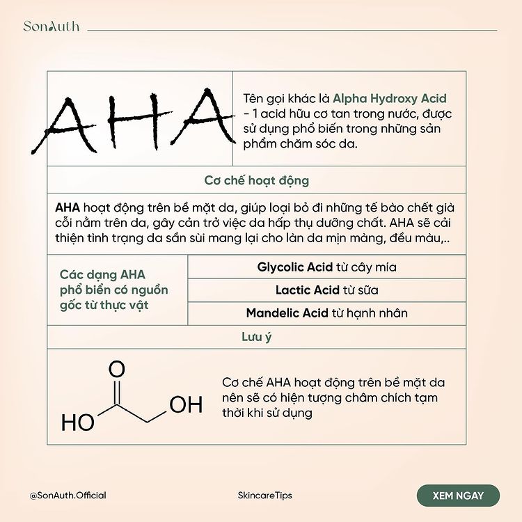 Cùng SonAuth nghiên cứu kỹ và lưu lại để lựa chọn loại AHA phù hợp với mình nhất nha 😙 Mọi thắc mắc bạn hãy nhắn tin để chúng mình tư vấn trực tiếp nhé ❤️