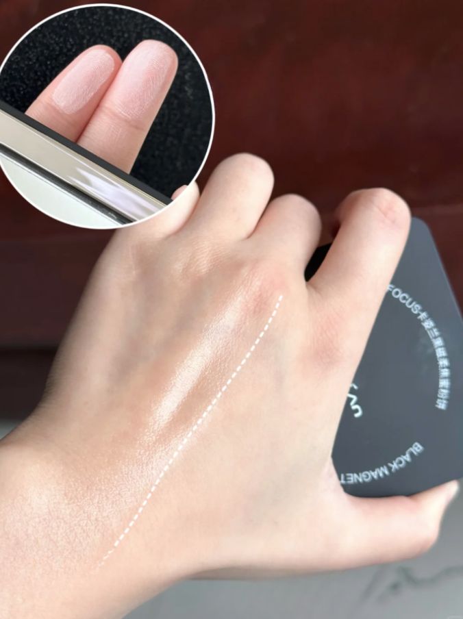 - Phát minh kết cấu hút chặt của phấn với hạt phấn hình lục giác 1.53um set nền bền màu chống dính suốt cả ngày