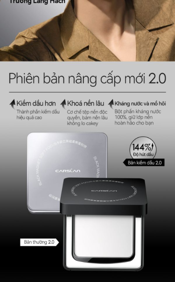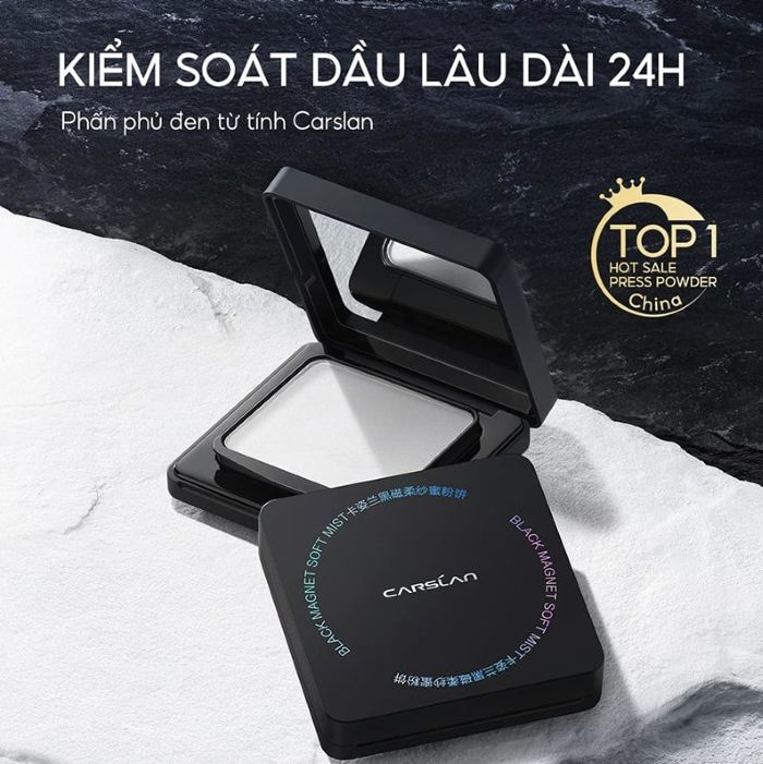 - Carslan Black Magnet Soft Focus Powder là phấn phủ dạng nén phiên bản mới 2.0: Kiềm dầu hơn - Khoá nền lâu - Kháng nước và mồ hôi