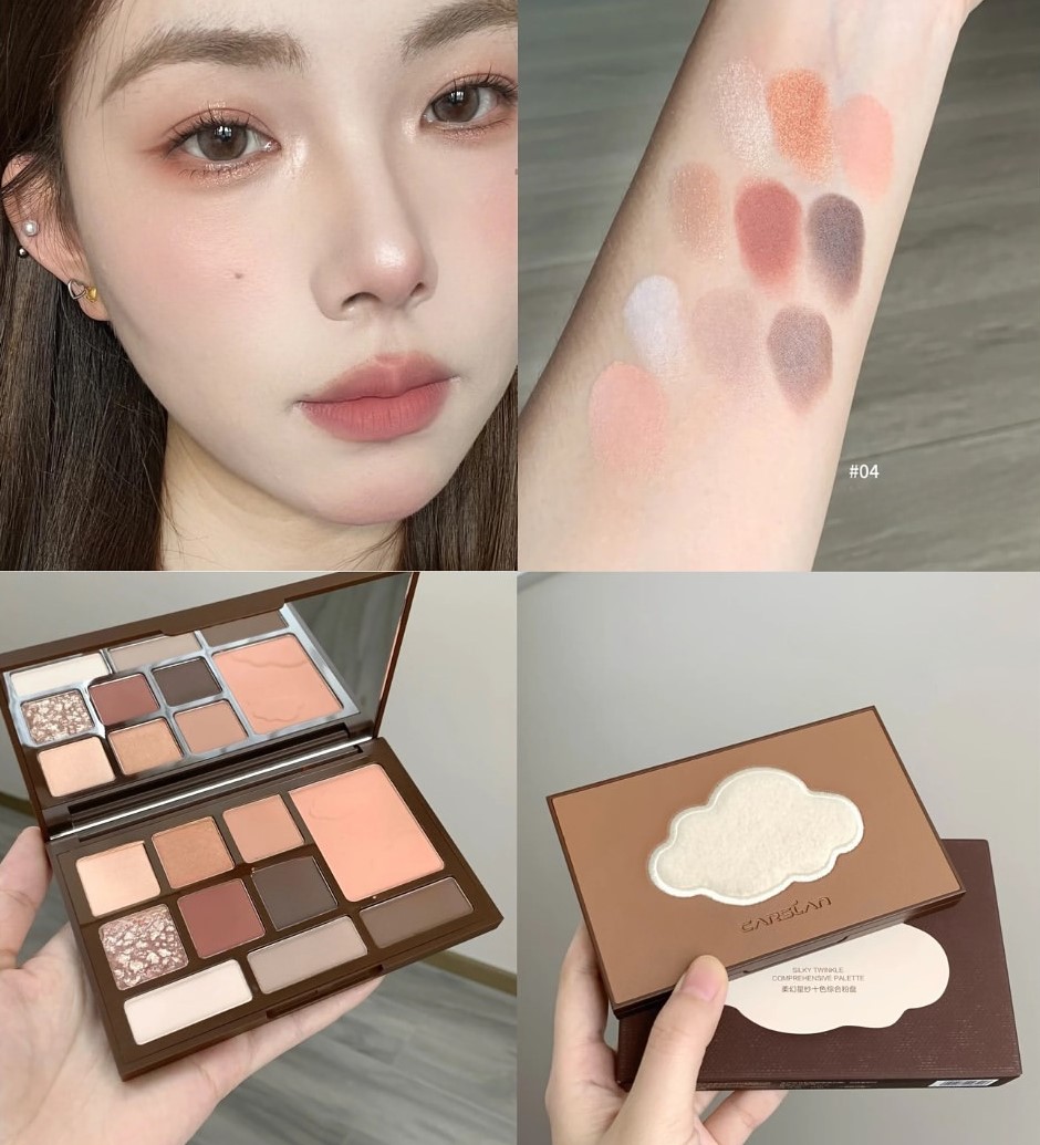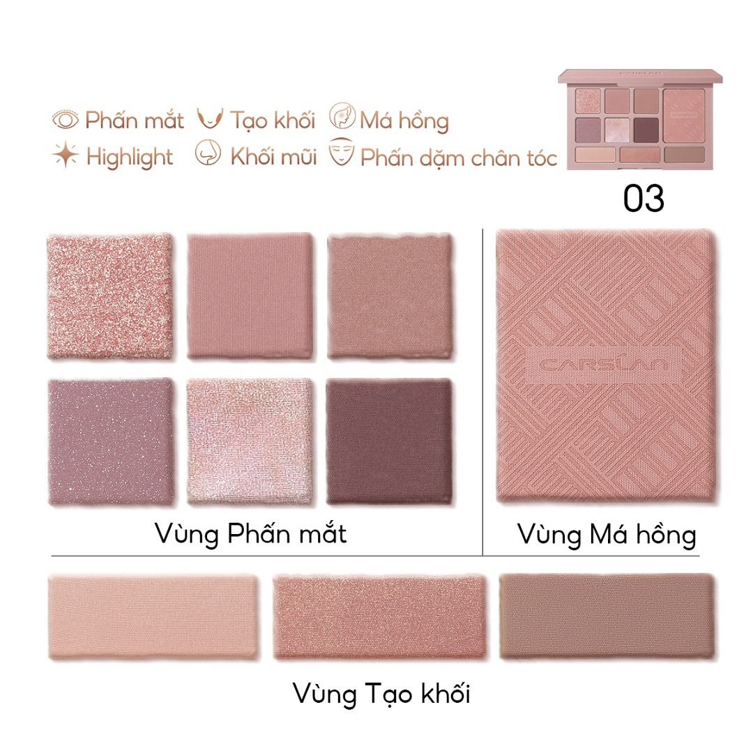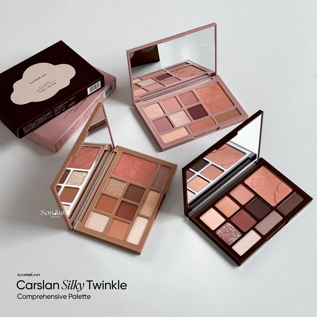 - Carslan Silky Comprehensive Palette là bảng phấn đa năng 3 trong 1 gồm phấn mắt + phấn bắt sáng/tạo khối + má hồng