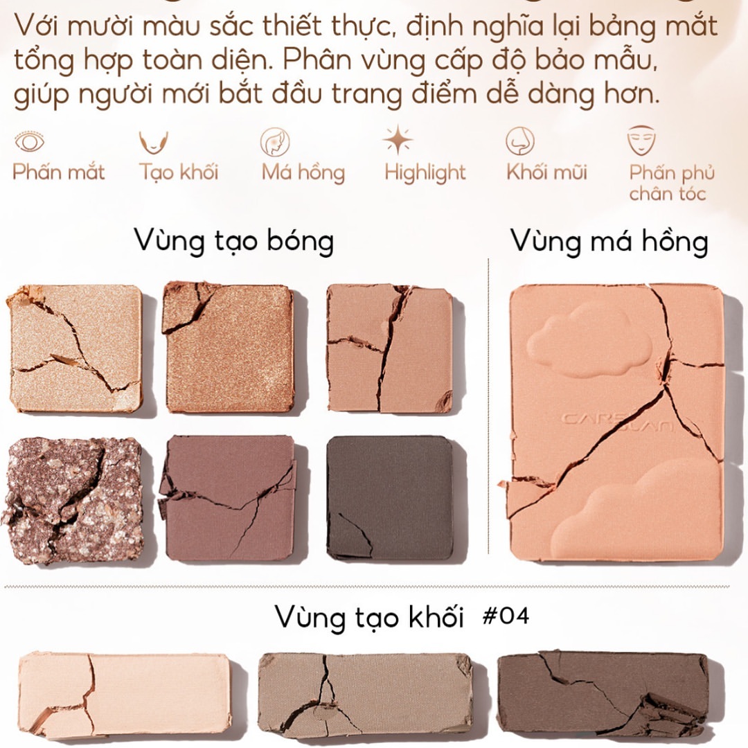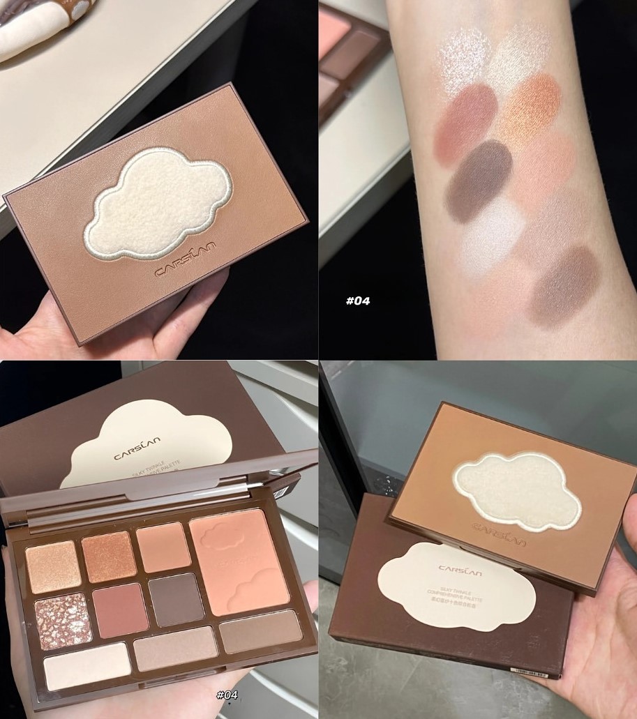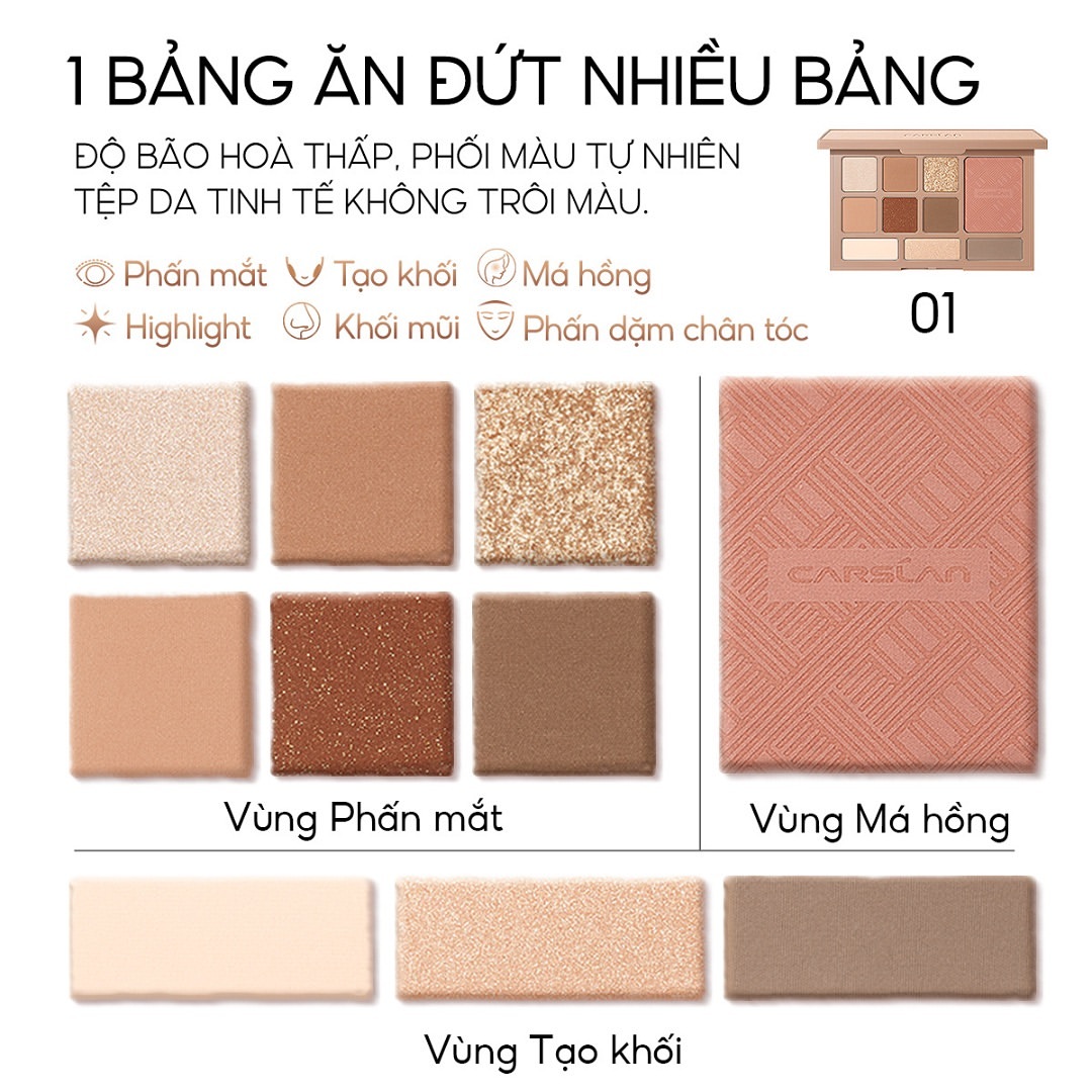 - Carslan Silky Comprehensive Palette là bảng phấn đa năng 3 trong 1 gồm phấn mắt + phấn bắt sáng/tạo khối + má hồng