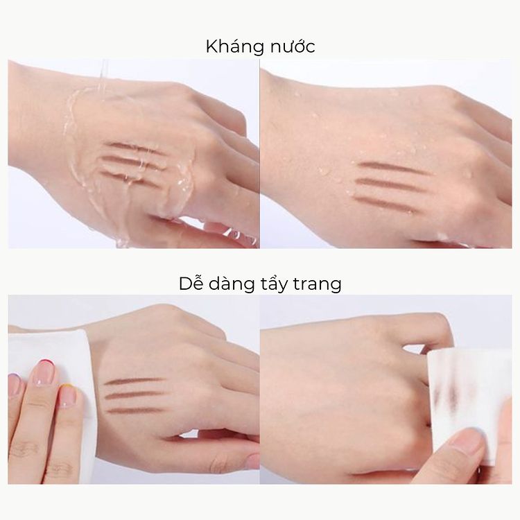 - Đầu bút mềm nhưng lại chắc chắn, không dễ bị gãy hay vón giúp bạn dễ dàng kẻ mí mắt trong, khóe mắt hay hốc mắt mà không gây đau hay tổn thương mắt