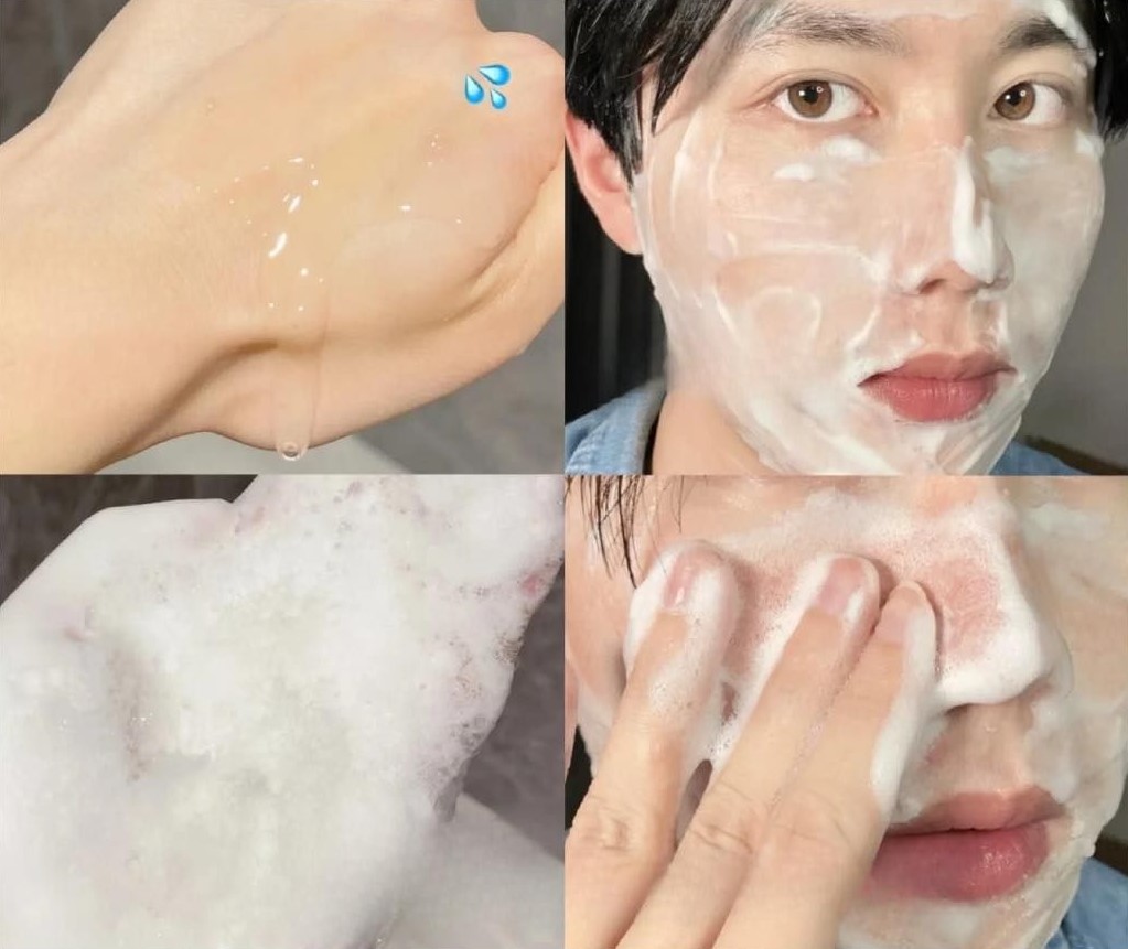 Thoa bọt lên vùng da đã được làm ướt, mát xa nhẹ để làm sạch da