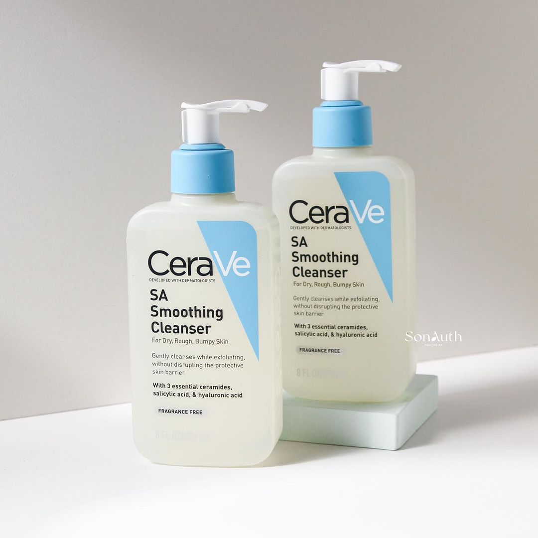 - Cerave SA Smoothing Cleanser là gel rửa mặt làm sạch sâu với các thành phần thiết yếu vừa nuôi dưỡng da lại chứa BHA thanh tẩy bề mặt da 1 cách nhẹ nhàng