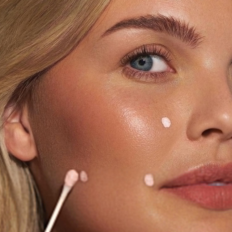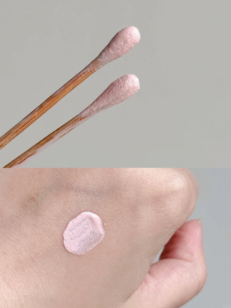 Dùng bông tăm lấy phần màu hồng, chấm 1 lớp nhẹ ngay trên vùng bị mụn, không tán đều sản phẩm ra các vùng xung quanh, để sản phẩm khô tự nhiên và rửa lại vào buổi sáng