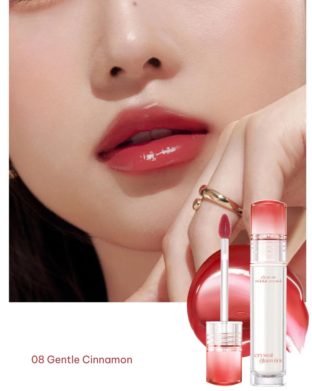 - Clio Crystal Glam Tint đúng như tên gọi là dòng son tint bóng có thiết kế độc đáo cùng chất son mỏng nhẹ mềm mịn tạo hiệu ứng đôi môi căng bóng, tràn đầy sức sống