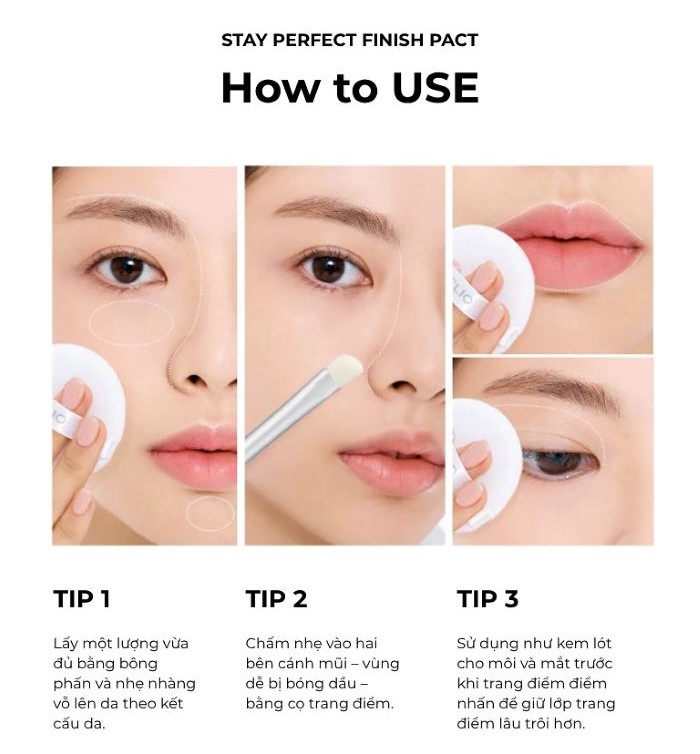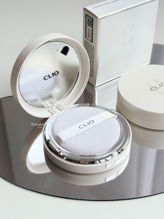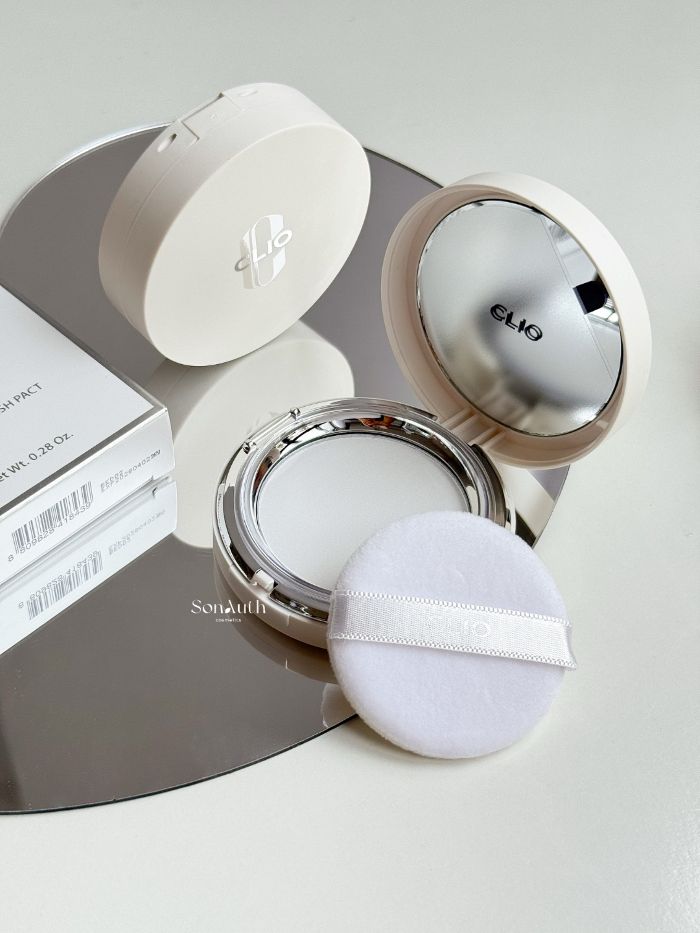 - Clio Stay Perfect Finish Pact là phấn phủ dạng nén có chức năng hút dầu vượt trội, kiểm soát bã nhờn giúp lớp trang điểm lâu trôi mà không bóng nhờn
