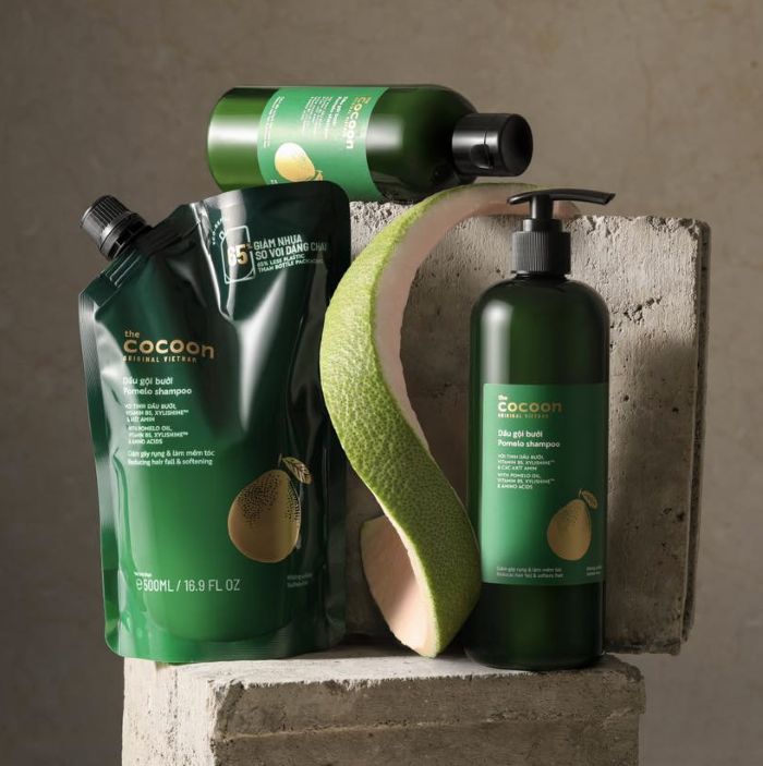 - Dầu gội bưởi Cocoon Pomelo Shampoo giúp làm sạch tóc và giảm gãy rụng, mang lại mái tóc đen dày, chắc khoẻ và mượt mà