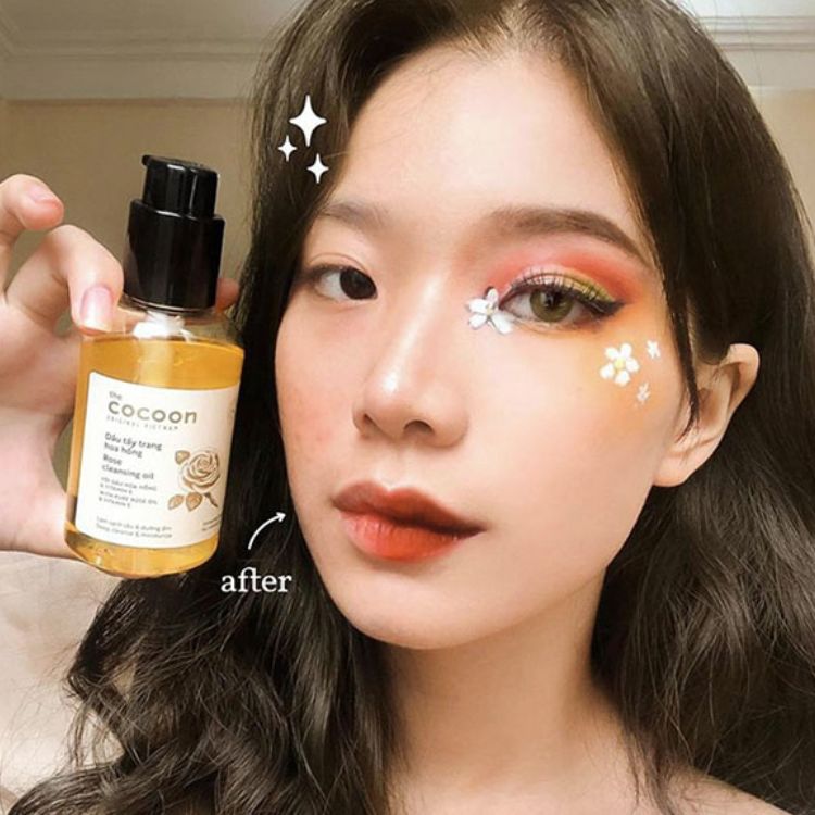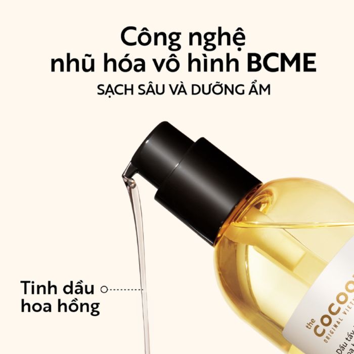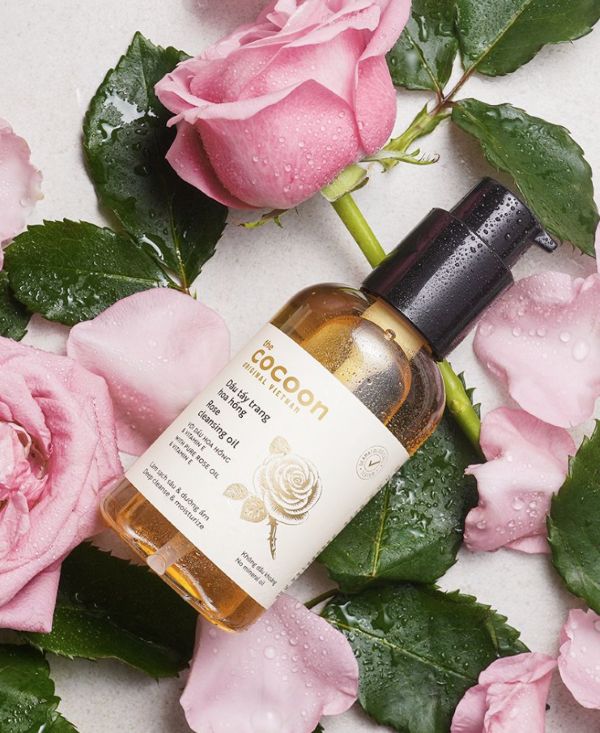 - Dầu tẩy trang Hoa Hồng Cocoon giúp làm sạch sâu lớp trang điểm, bụi bẩn và dầu thừa, dưỡng ẩm mà không để lại cảm giác nhờn rít khó chịu