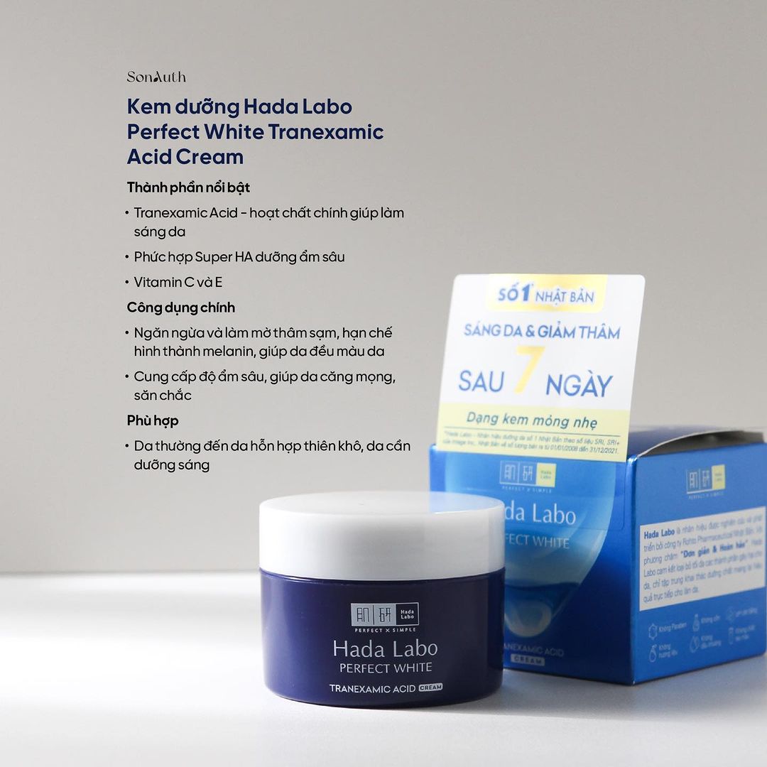 - Hada Labo Perfect White Tranexamic Acid Cream là dòng kem dưỡng sáng da, giảm thâm sạm tối ưu