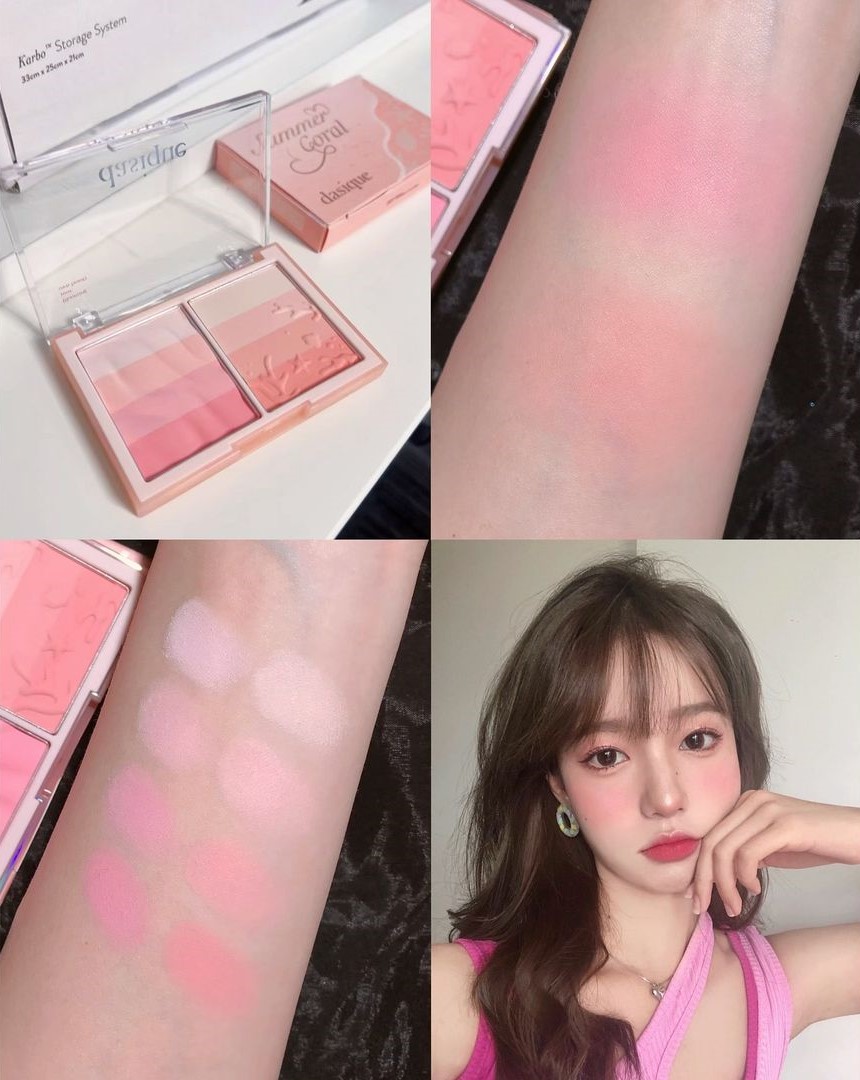 - Lấy cảm hứng từ những rặng san hô, bảng phấn má Dasique Blending Layer Cheek sẽ là sự kết hợp của 8 vạch kẻ màu cùng tone những khác những sắc thái, mang tới vẻ đẹp hài hòa chuyển màu rất mượt mà bạn có thể sử dụng để giúp diện mạo không bị cùng tone rất hợp lý