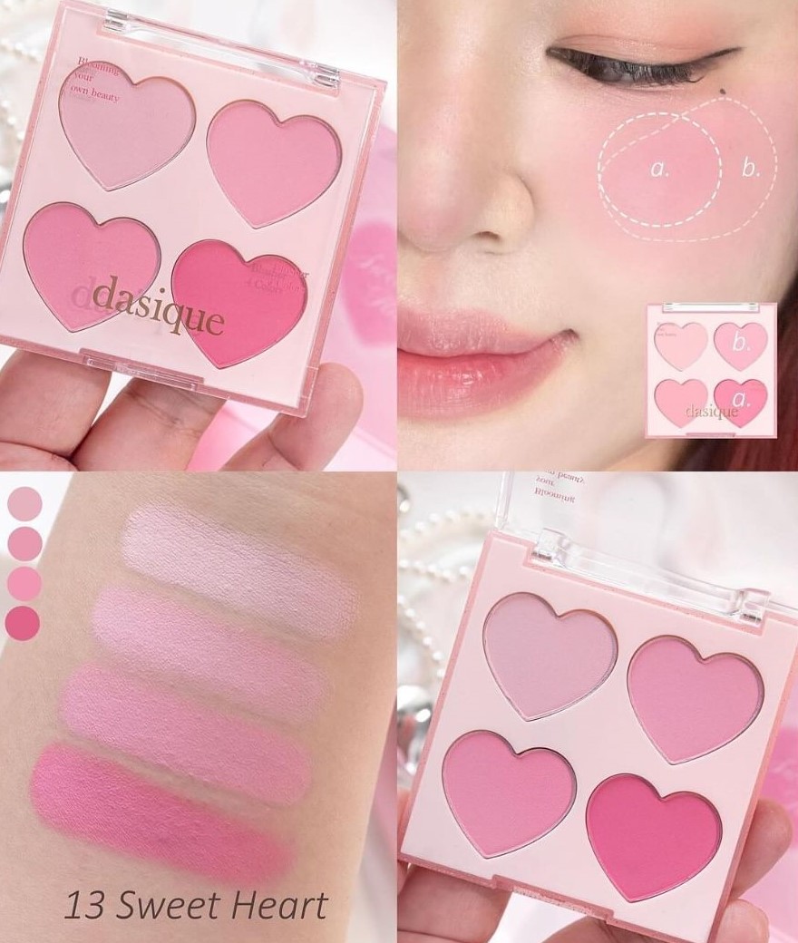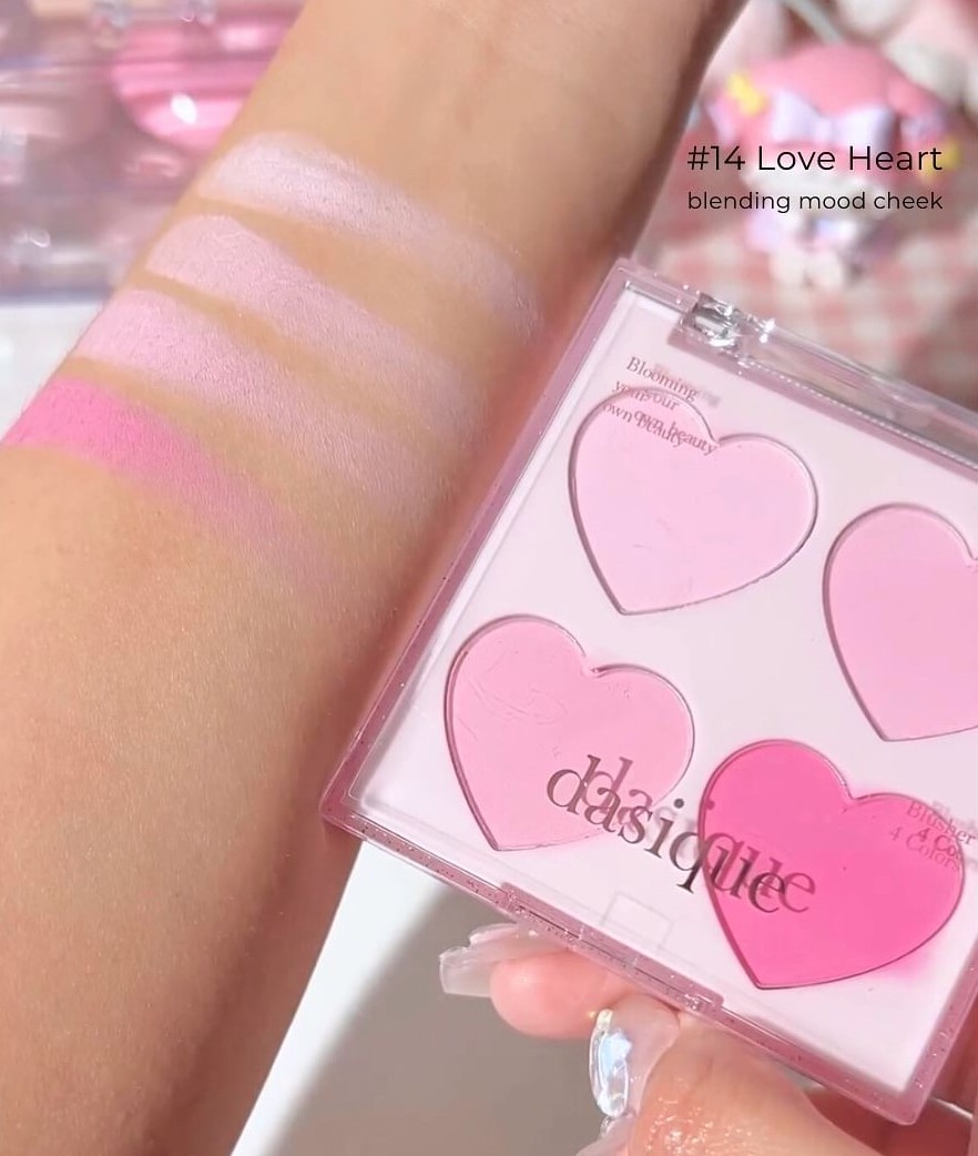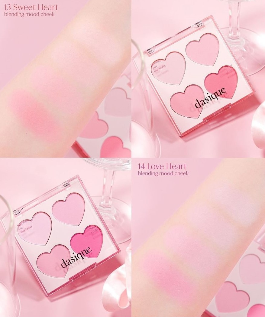 - Dasique Blending Mood Cheek Sweet Heart Collection là bảng phấn má 4 ô trong phiên bản đặc biệt có thiết kế bao bì hình trái tim ngọt ngào