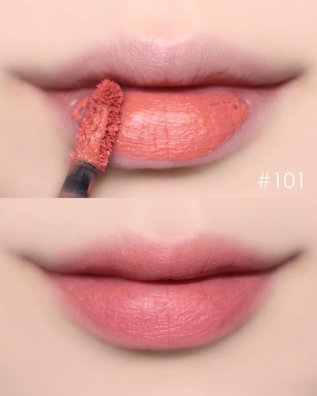 - Chất son kem mềm mịn, thoa lên môi mịn như có một lớp filter mờ, giúp môi có sắc màu tươi tắn, tự nhiên mà không làm khô môi