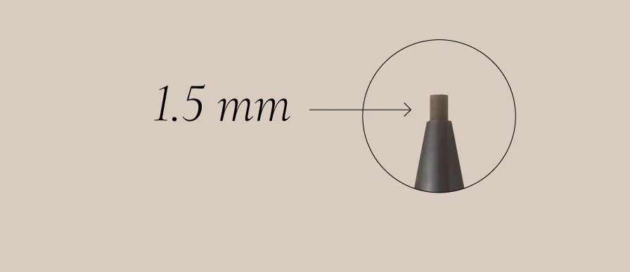 - Đầu chì nhỏ chỉ từ 1.5mm kẻ một lần là đã có thể bám khít lên trên da, chỉ cần với thời gian ngắn màu chì đã có thể khô lại và không bị nhòe. Ở những giây đầu tiên khi mực chưa cố định lại bạn có thể chỉnh sửa nét vẽ dễ dàng.