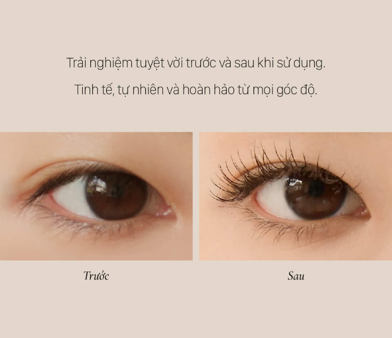 - Đôi mi cong vút với kết cấu bám đều vào từng sợi mi, giúp tạo điểm nhấn và sự thu hút cho đôi mắt