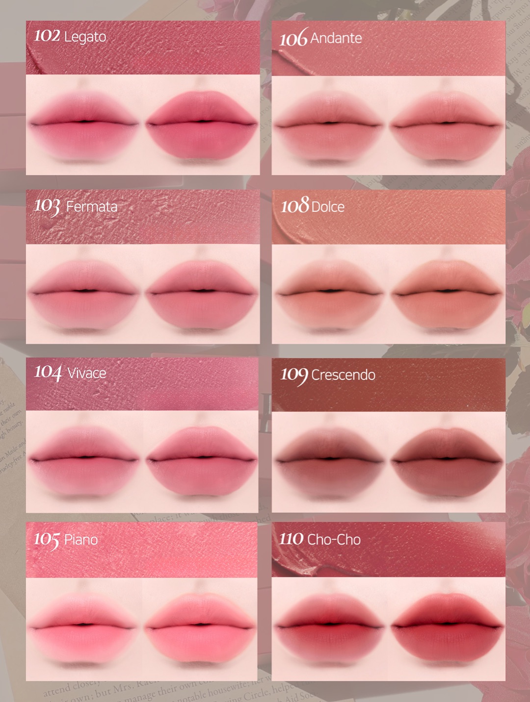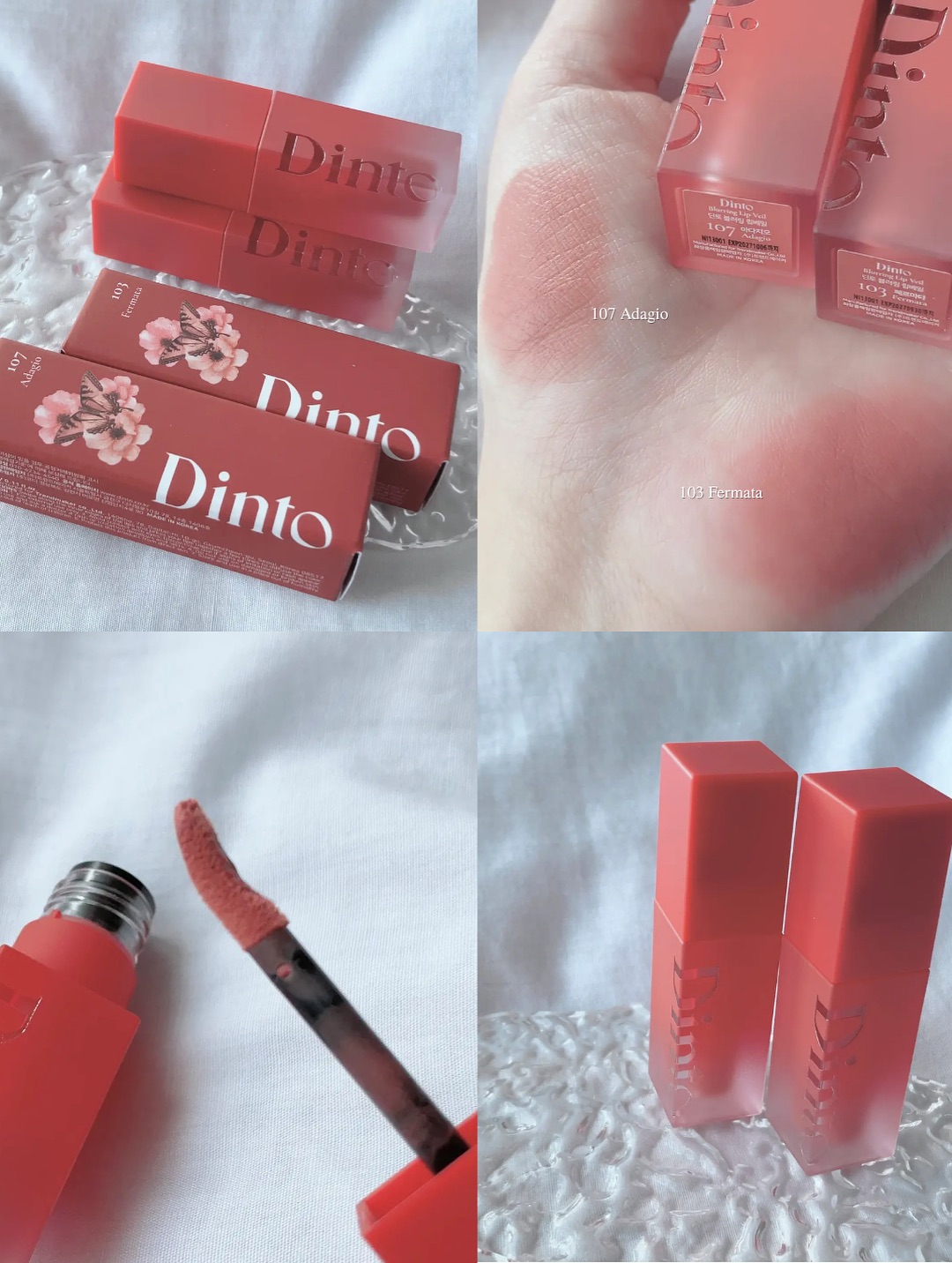 - Dinto Madame Butterfly Collection Blurring Lip Veil là dòng son kem mang lại lớp son mờ mịn biểu trưng cho nét đẹp mong manh, nhẹ nhàng nhưng đầy nội lực, cảm xúc sâu sắc