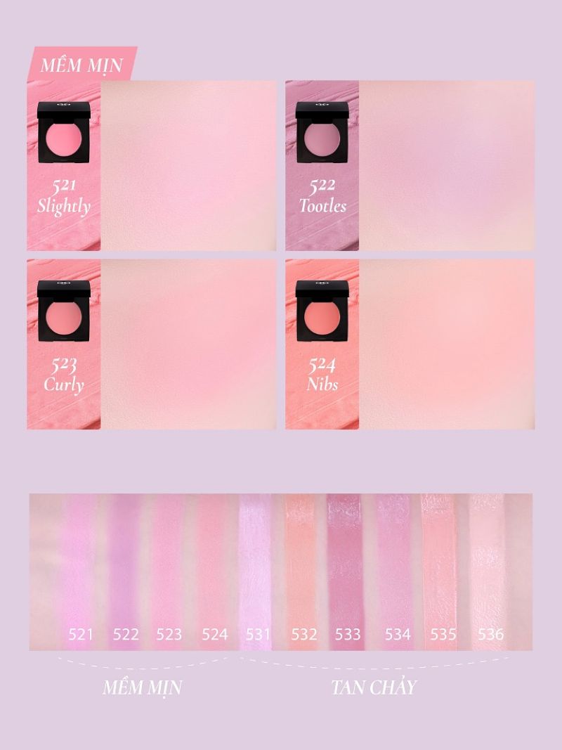 Kết cấu sáp tan chảy nhẹ nhàng, hoà quyện trên má, mang đến lớp nền bóng nhẹ tự nhiên