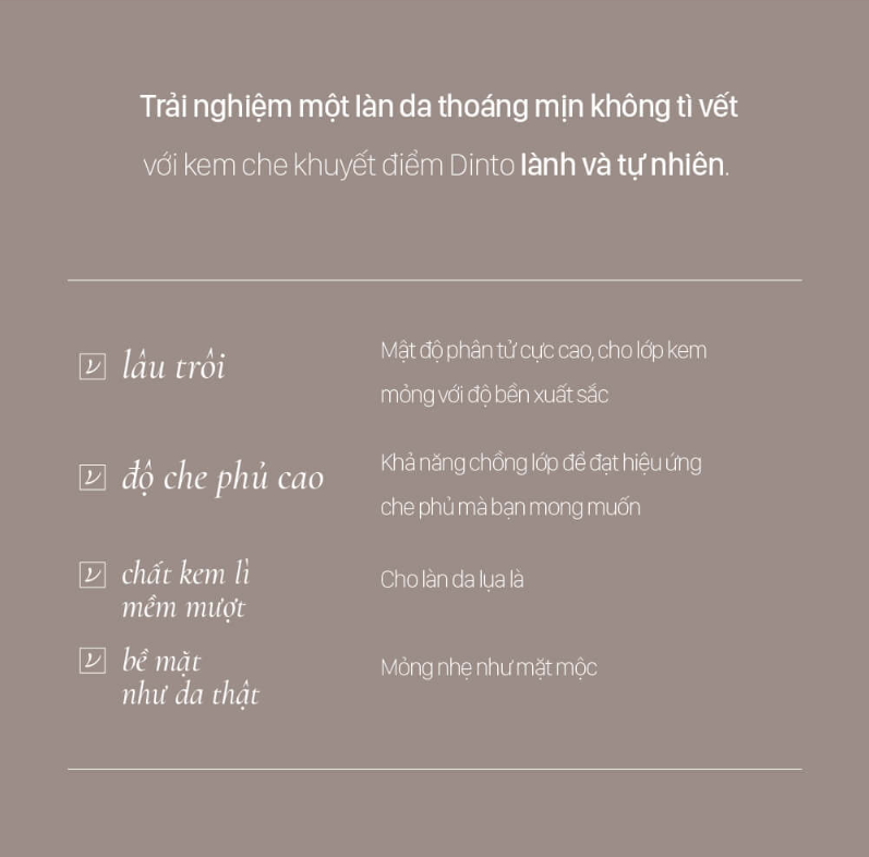 - Sản phẩm có độ che phủ cao linh hoạt: Công nghệ polymer hiện đại cho phép chồng lớp dễ dàng, che phủ tốt mọi khuyết điểm như quầng thâm, thâm mụn, hay lỗ chân lông mà vẫn tự nhiên