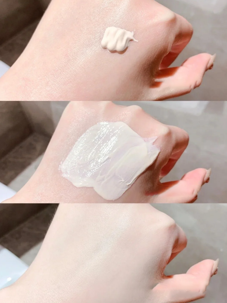Chất kem màu hồng đào mỏng nhẹ thấm nhanh dùng cả ngày vẫn thấy thoáng mát thoải mái trên da, có thể thay thế kem nền khi đi học đi làm.