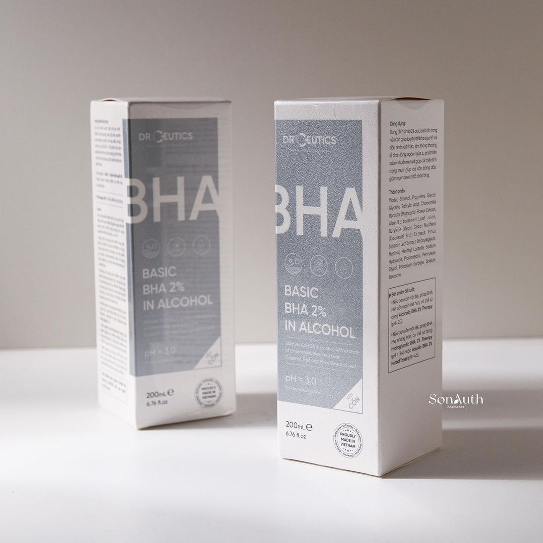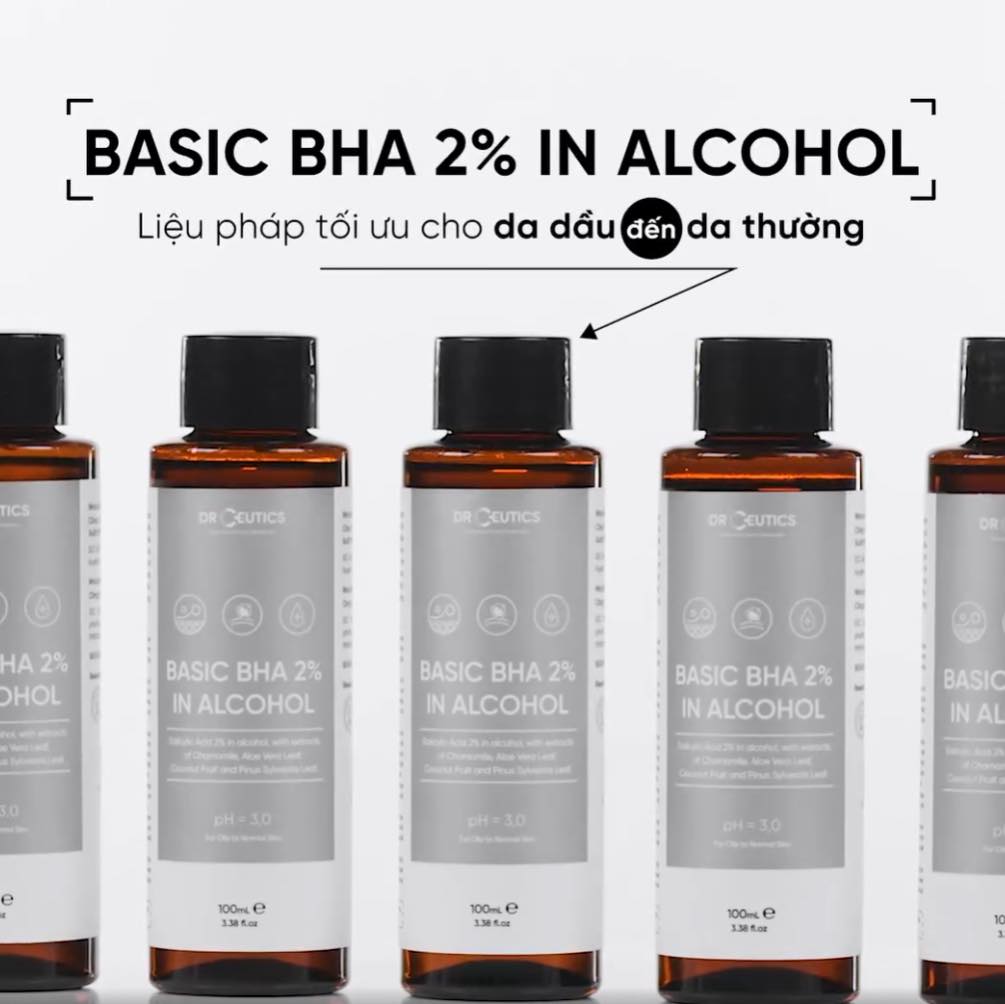 - DrCeutics Basic BHA 2% In Alcohol là dung dịch tẩy tế bào chết hóa học chứa những hoạt chất cơ bản tạo nên công thức basic BHA 2% nền cồn giúp làm sạch sâu cho da và cải thiện bề mặt da hiệu quả