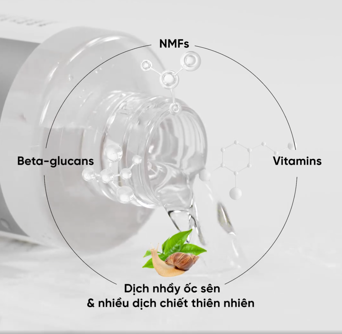 - Dịch nhầy Ốc Sên tăng sinh tái tạo vùng da tổn thương, chống oxy hóa, bảo vệ da trước tác động của môi trường và ánh sáng mặt trời. Dịch nhầy còn là chất giữ ẩm và làm dịu da hiệu quả