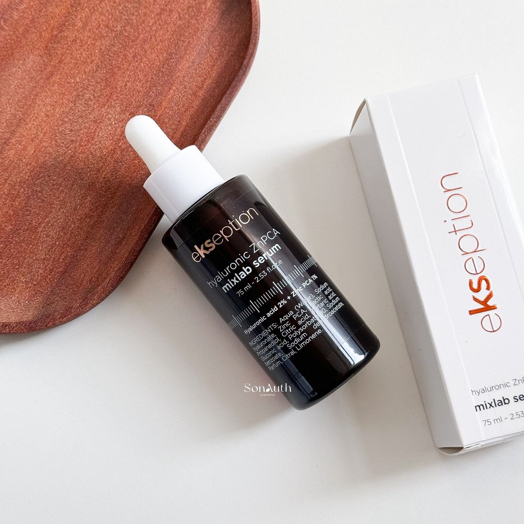 - Ekseption Hyaluronic ZnPCA Mixlab Serum là dòng serum dành cho da có mụn và dầu nhờn, được ứng dụng công nghệ mixlab cho phép các dòng serum với nền Hyaluronic Acid của Ekseption có thể kết hợp dùng chung với nhau mà không làm ảnh hưởng độ pH, tạo ra một sản phẩm độc đáo phù hợp với nhu cầu và tình trạng da của bạn. Vì vậy sản phẩm cũng được khuyên dùng sau quá trình nặn mụn, giúp thúc đẩy nhanh quá trình lành thương. Đặc biệt ngay thời điểm da tổn thương sau nặn mụn