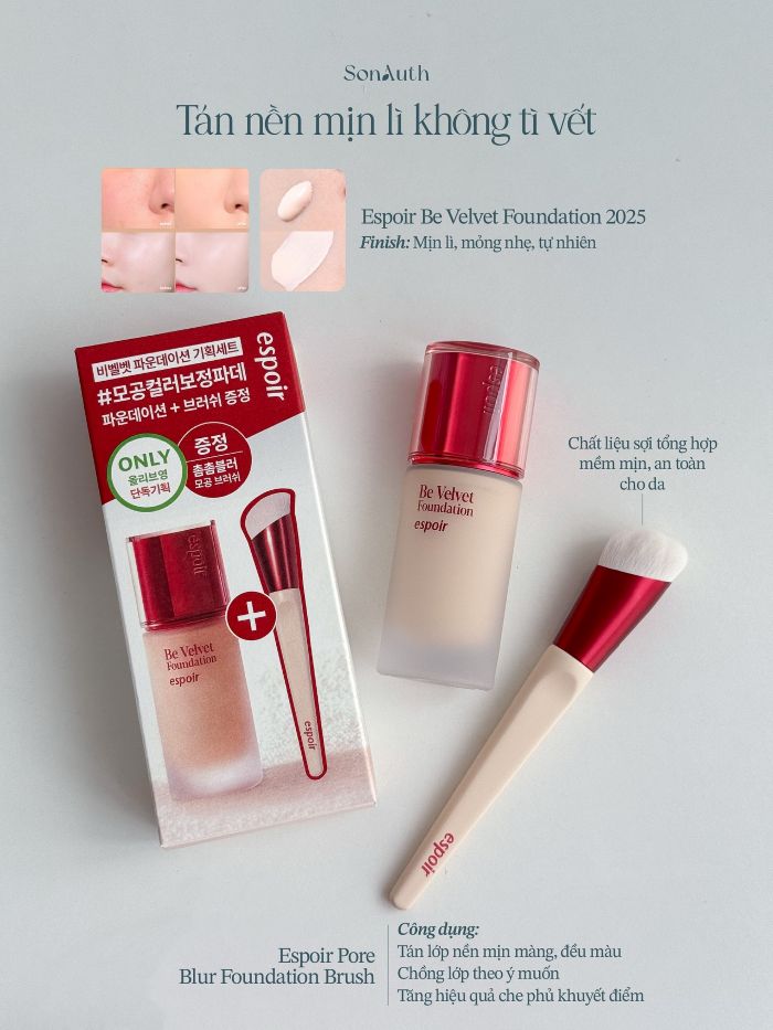Espoir luôn dẫn đầu xu hướng trang điểm chuyên nghiệp mà thân thiện với làn da. Lần này, từ tâm huyết ấy, Espoir gửi đến bạn kem nền Kem Nền Che Phủ Bền Màu Espoir Be Velvet Foundation 2025 SPF22 PA++, món trang điểm cho lớp nền toàn diện giúp bạn toả sáng cả ngày mà vẫn giữ được sự tự nhiên vốn có của làn da.
