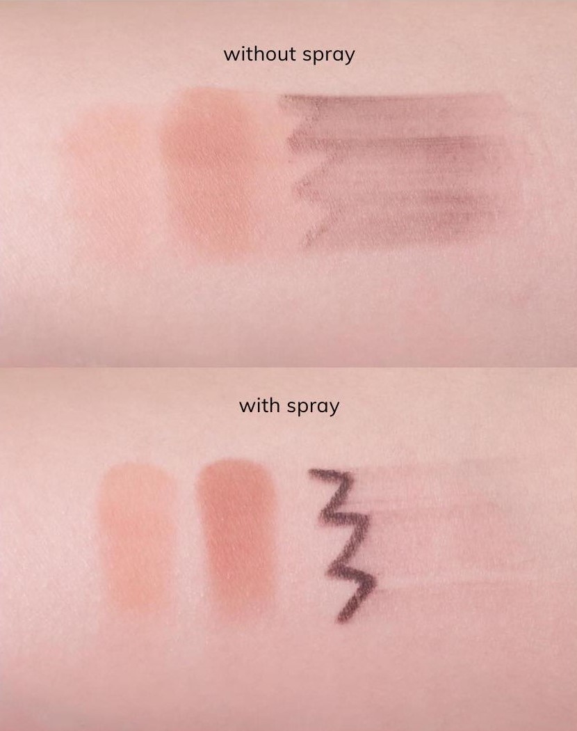 Sử dụng như 1 sản phẩm tăng cường độ bám màu: Xịt sản phẩm lên cọ phấn trước khi lấy phấn mắt, highlight/bronzer sau đó thoa lên mắt hoặc vùng da mong muốn giúp phấn bám màu lâu hơn Khóa lớp trang điểm: Xịt sản phẩm đều gương mặt sau khi đã hoàn thành lớp trang điểm để "khóa" lại.