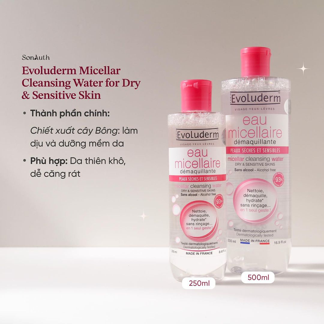 Evoluderm Micellar Cleansing Water for Dry & Sensitive Skin là nước tẩy trang quốc dân với đủ các tiêu chí: nhẹ dịu, làm sạch hiệu quả, mức giá hợp lý.