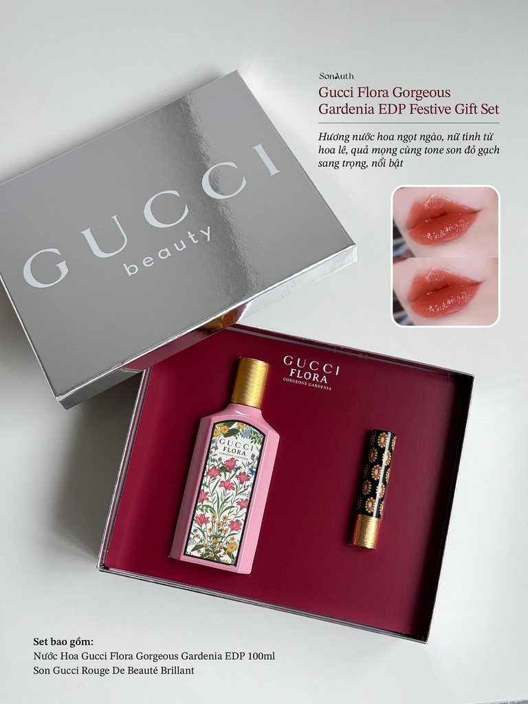 Gucci Flora Gorgeous Gardenia Eau de Parfum Festive Gift Set (100ml EDP + Gucci Rouge)