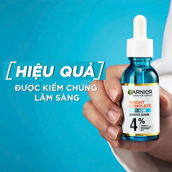 - Garnier Bright Complete Anti-Acne Booster Serum là tinh chất dưỡng da vượt trội, giúp giảm mụn sáng cho da